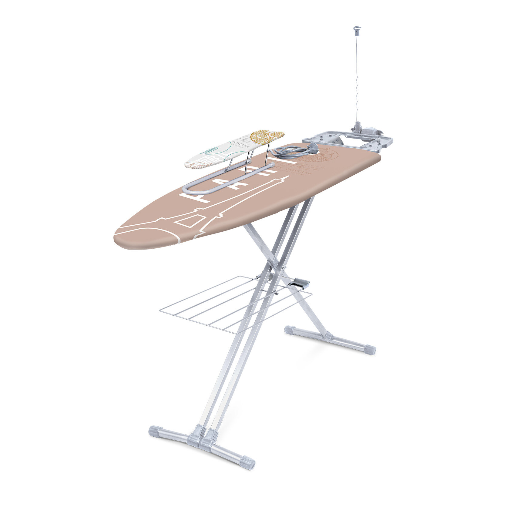 | Подробная комплектация | доска, съемный чехол, подставка для утюга, кронштейн, полка для белья, переносной подрукавник, электрический соединитель 1,9 м., упаковка |