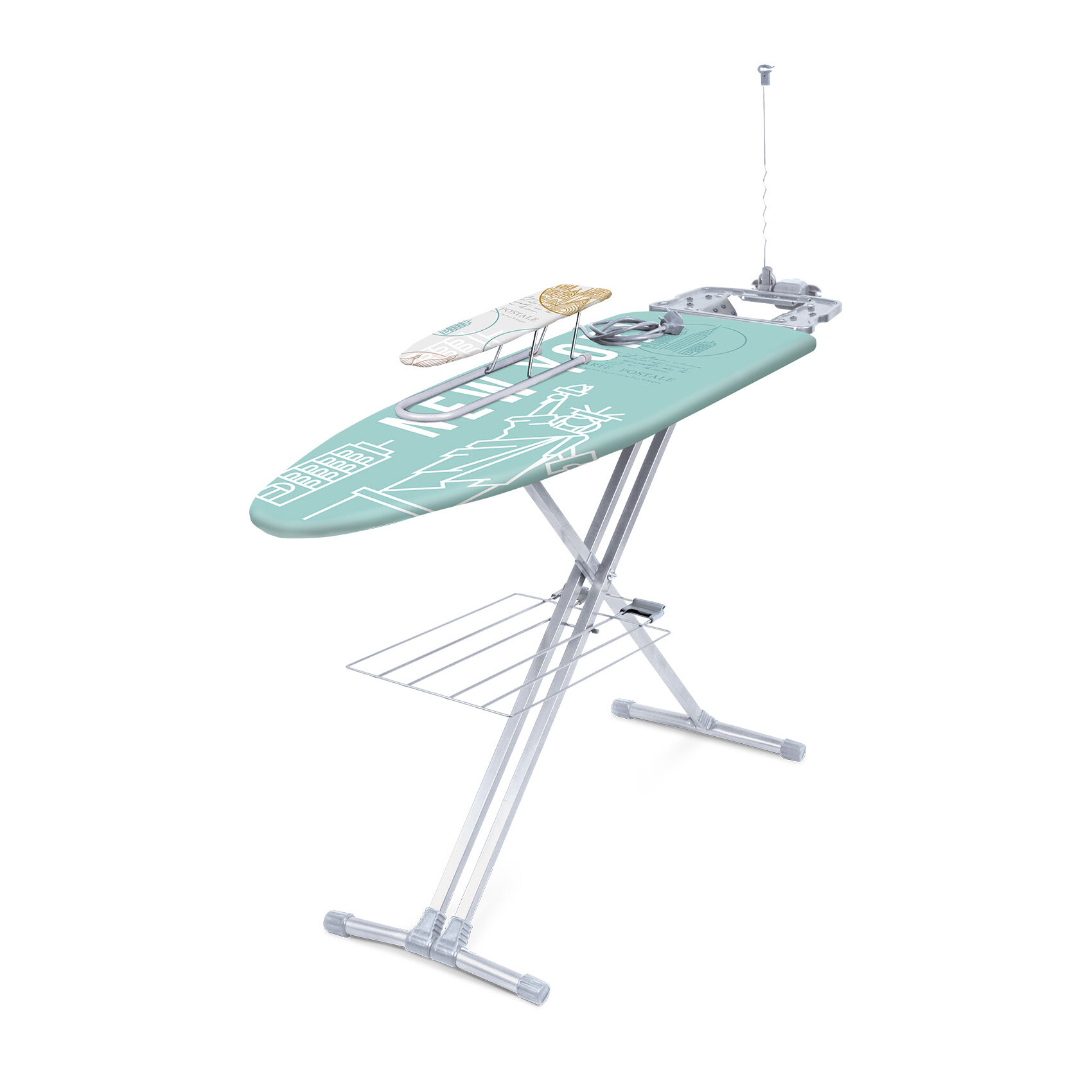 | Подробная комплектация | доска, съемный чехол, подставка для утюга, кронштейн, полка для белья, переносной подрукавник, электрический соединитель 1,9 м., упаковка |