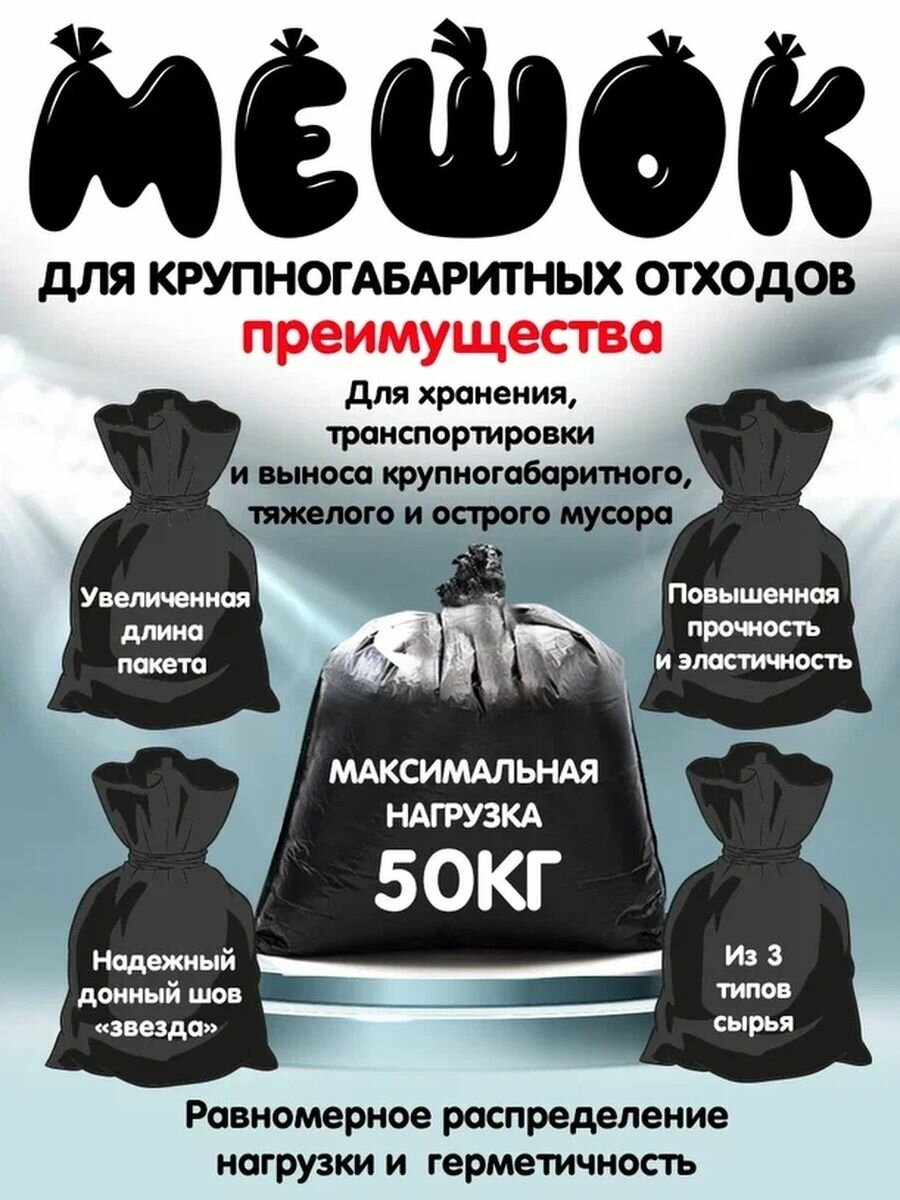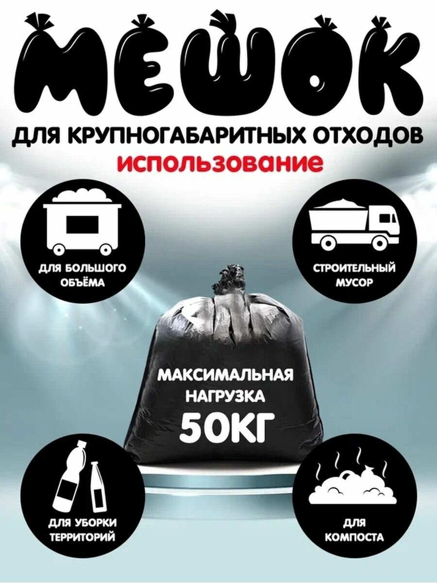 Мешок мусорный 180 литров, сверхпрочный, для строительного мусора, для уборки территории, для уборки после ремонта