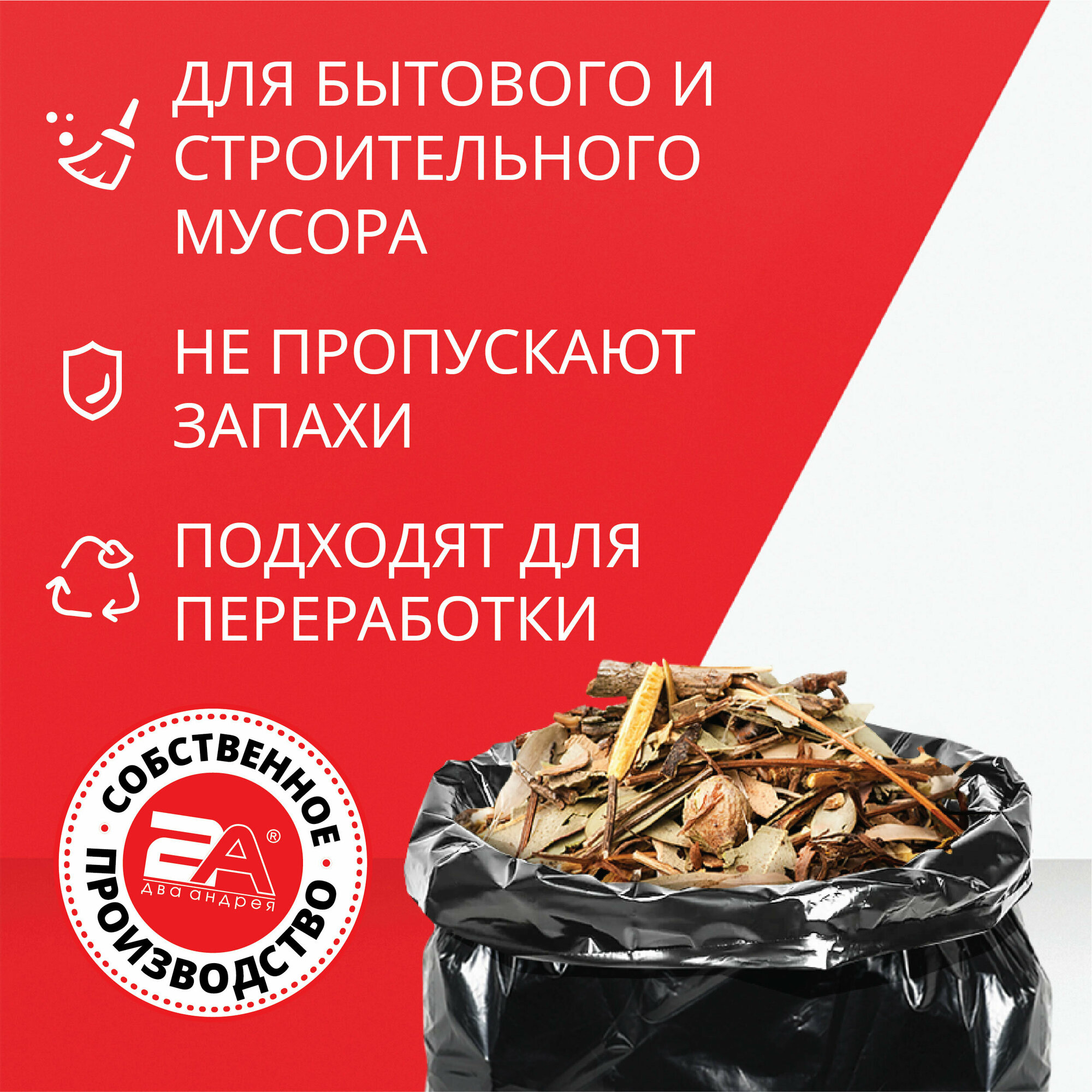 Мешки для мусора Два Андрея, черные, полиэтилен, 120л, 20 штук
