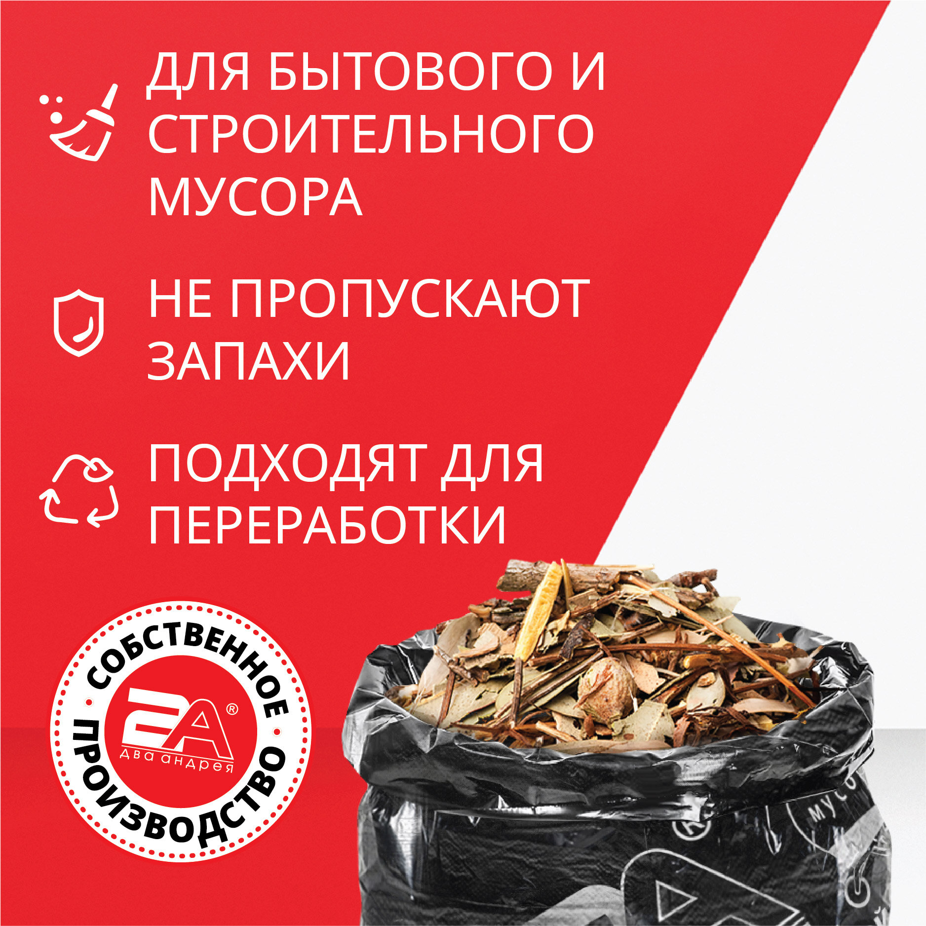 Два Андрея - Большие прочные мешки для мусора 300 л