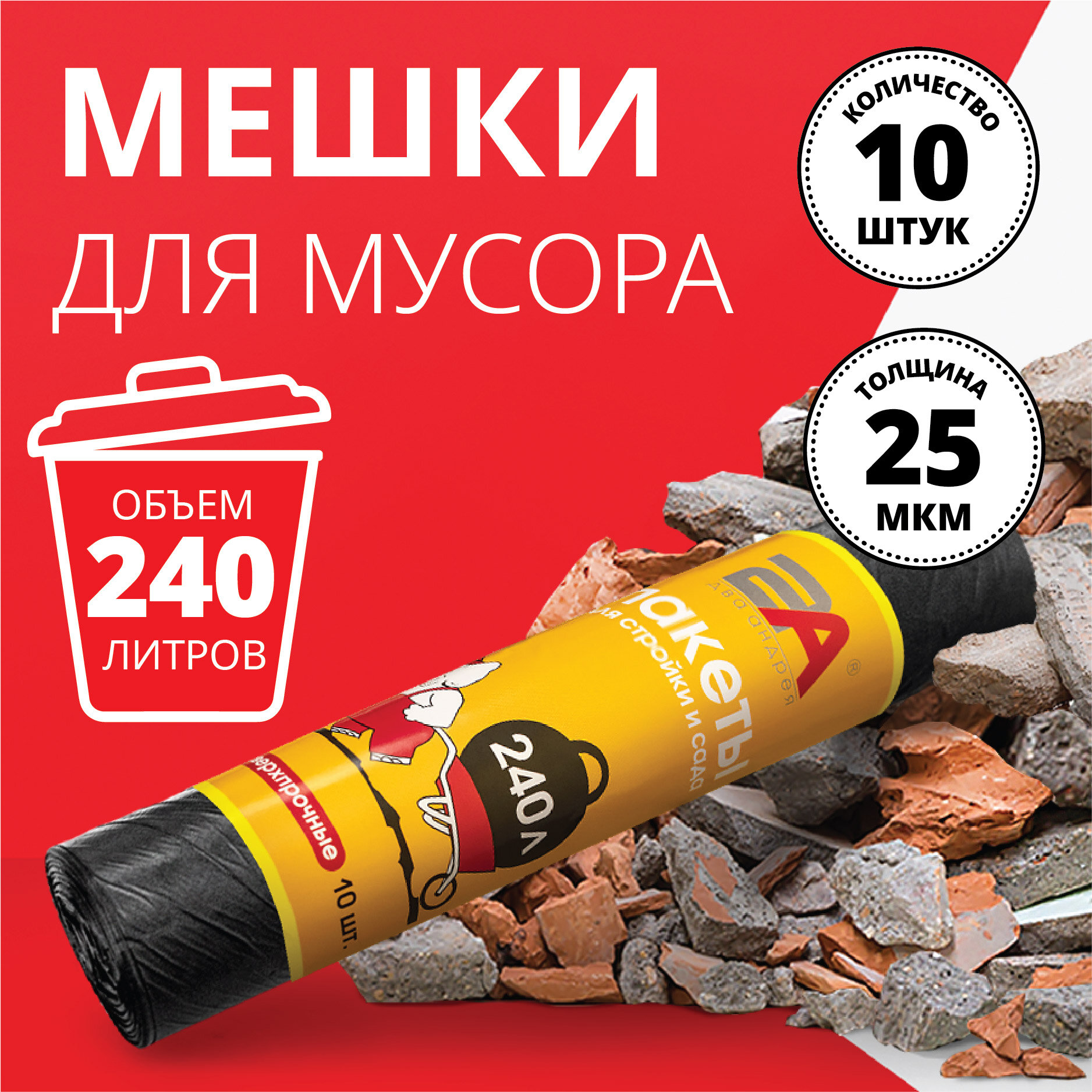 Купить Большие мешки для строительного мусора "Два Андрея" 240 литров