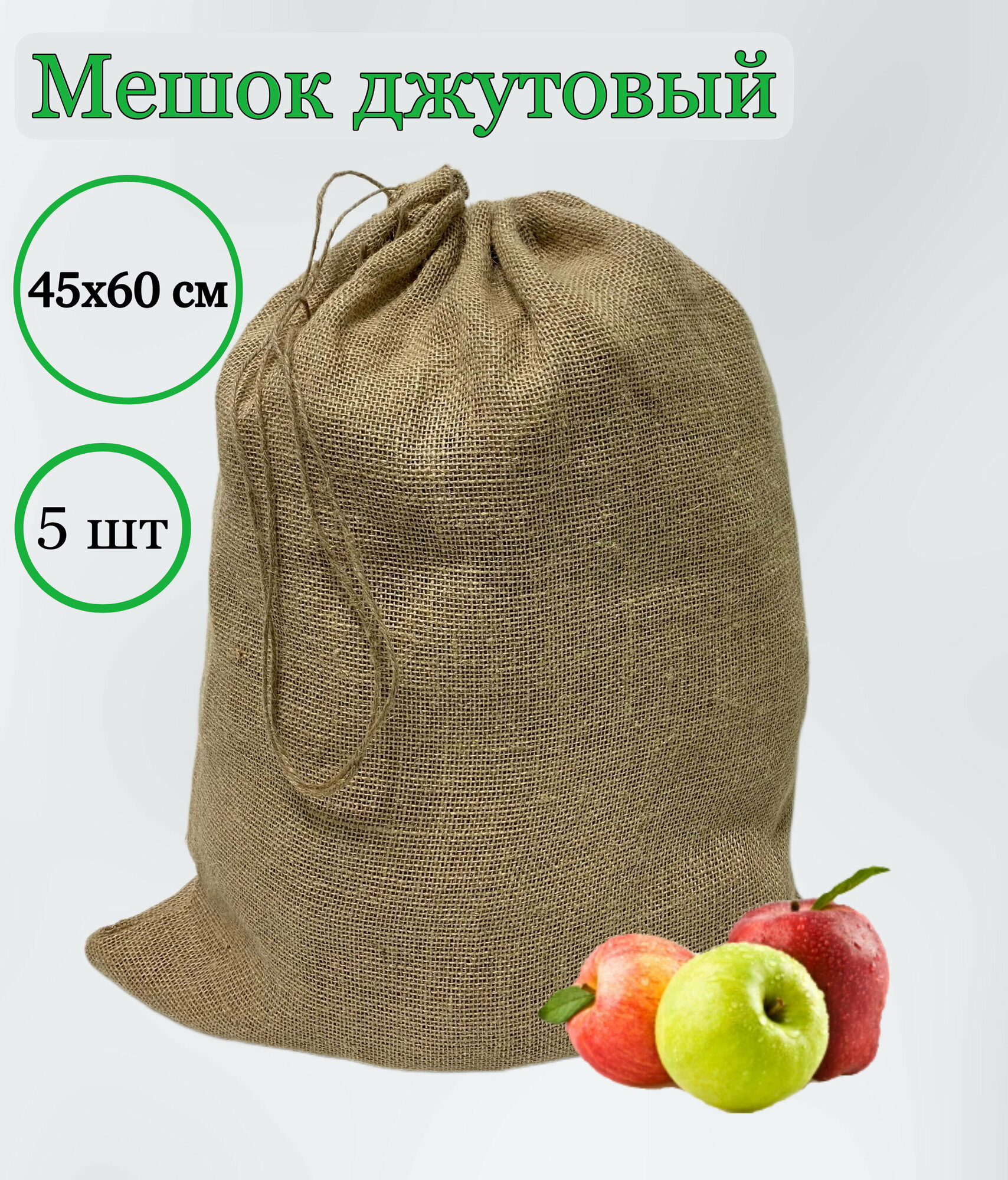 Мешок джутовый, 45×60 см.,5 штук с завязками, плотность 270 г/м² (число нитей 46/40 см/2) интересное: