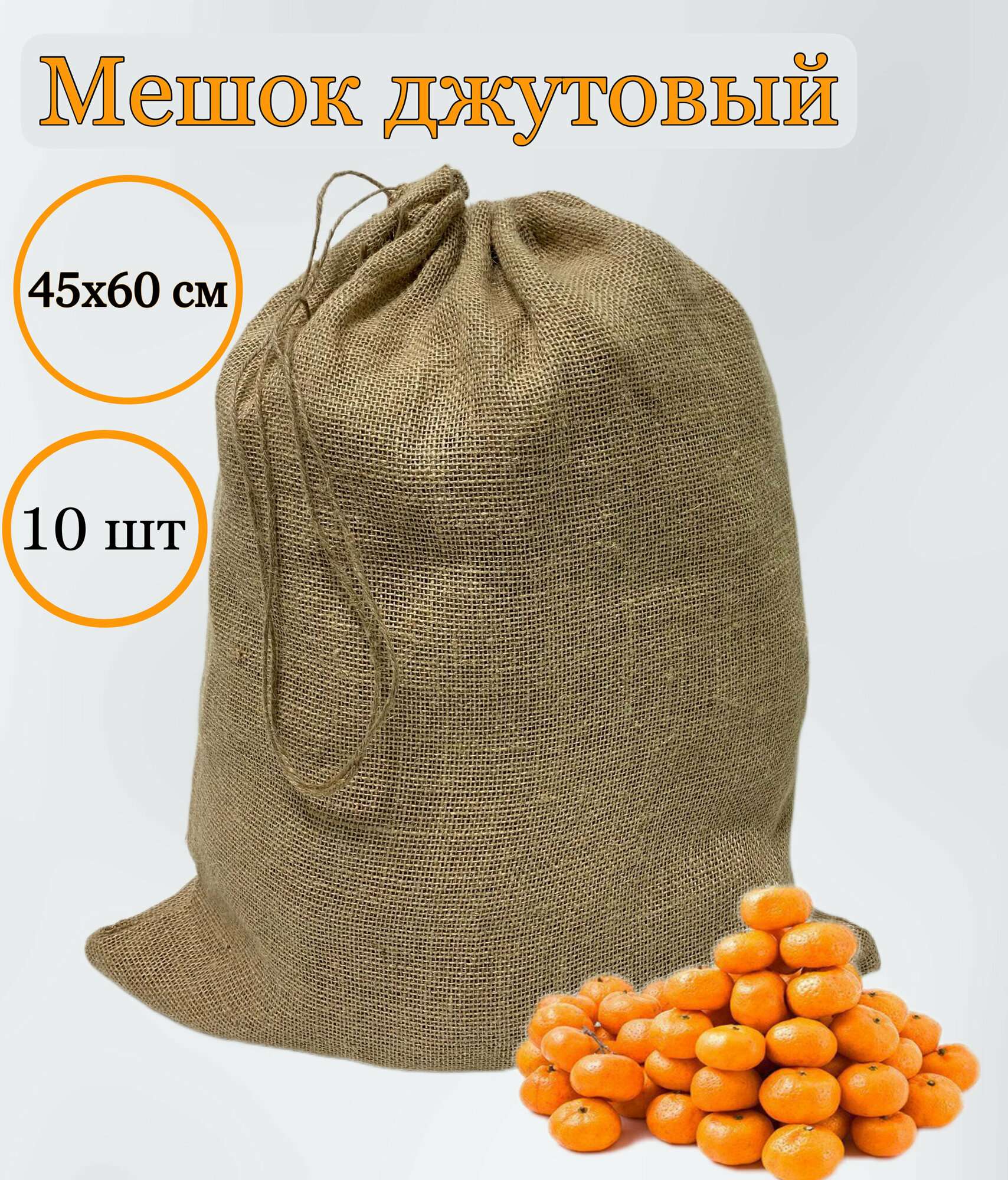 Мешок джутовый, 45×60 см., 10 шт. с завязками, плотность 270 г/м² (число нитей 46/40 см/2) интересное: