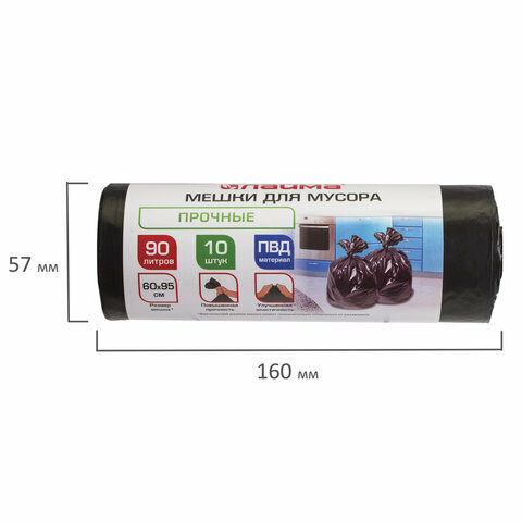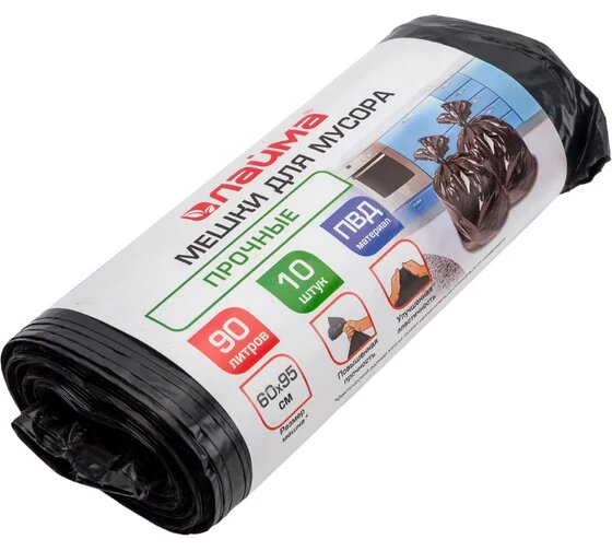 Мешки для мусора 90 л, черные, в рулоне 10 шт., прочные, ПВД 25 мкм, 60х95 см, LAIMA, 605332 интересное: