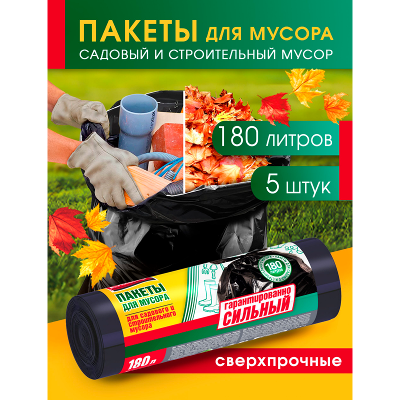 Мешки для садового и строительного мусора Avikomp, 38 мкм, 180 л, рулон 5 шт, черные интересное: