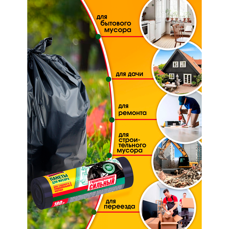 Мешок мусорный 180 литров, сверхпрочный, для строительного мусора, для уборки территории, для уборки после ремонта