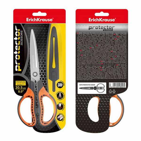 Ножницы 20.5см ErichKrause "Protector" с чехлом, серо-оранжевый 48057 5080748