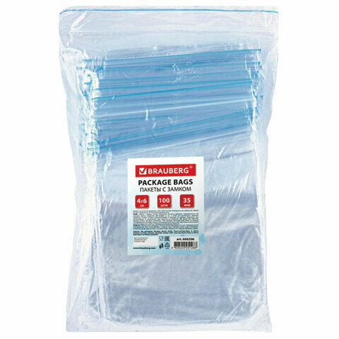 Пакеты с замком ZIP LOCK "зиплок", комплект 100 шт., 40х60 мм, ПВД, толщина 35 микрон, BRAUBERG, 606206 интересное: