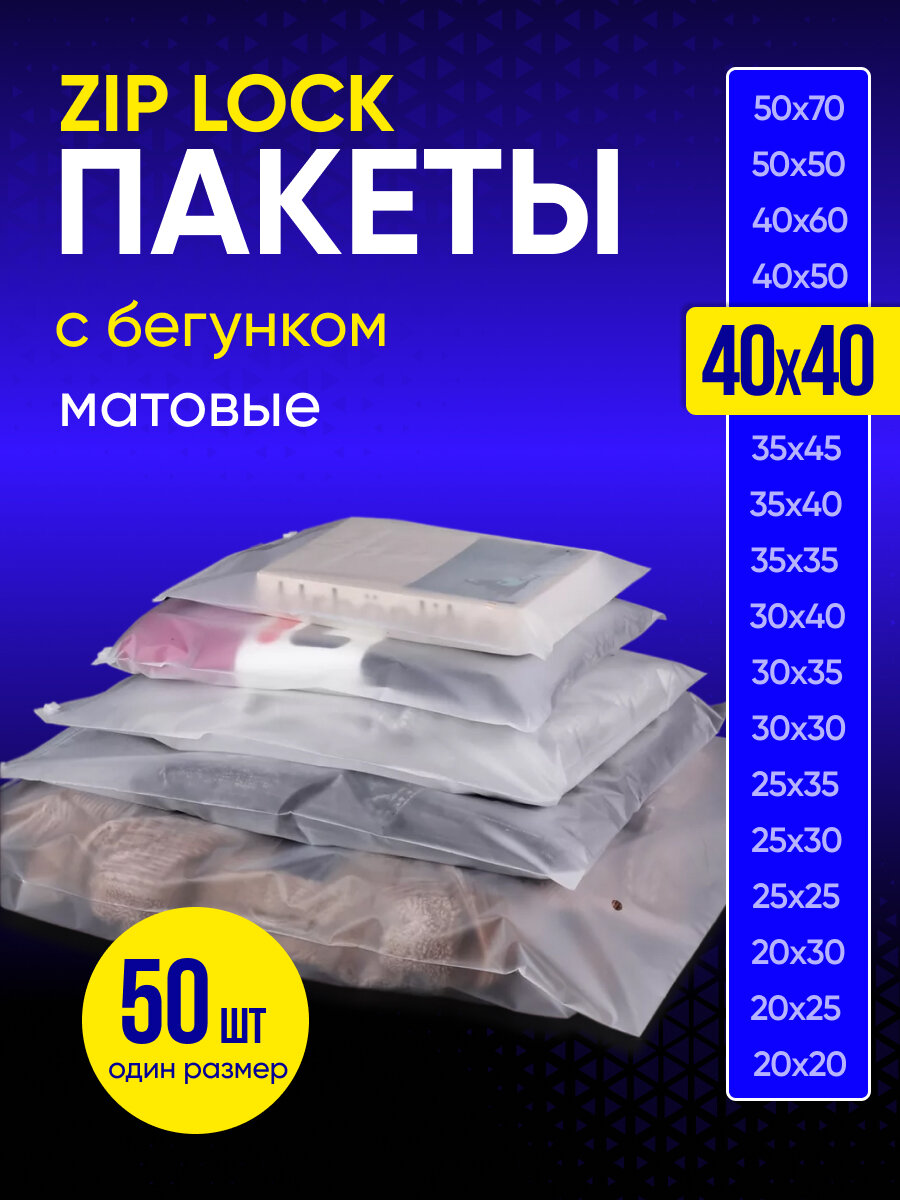 Упаковочный пакет с Зип лок бегунком, 40х50 см, 50 шт, матовые, 120 мкм