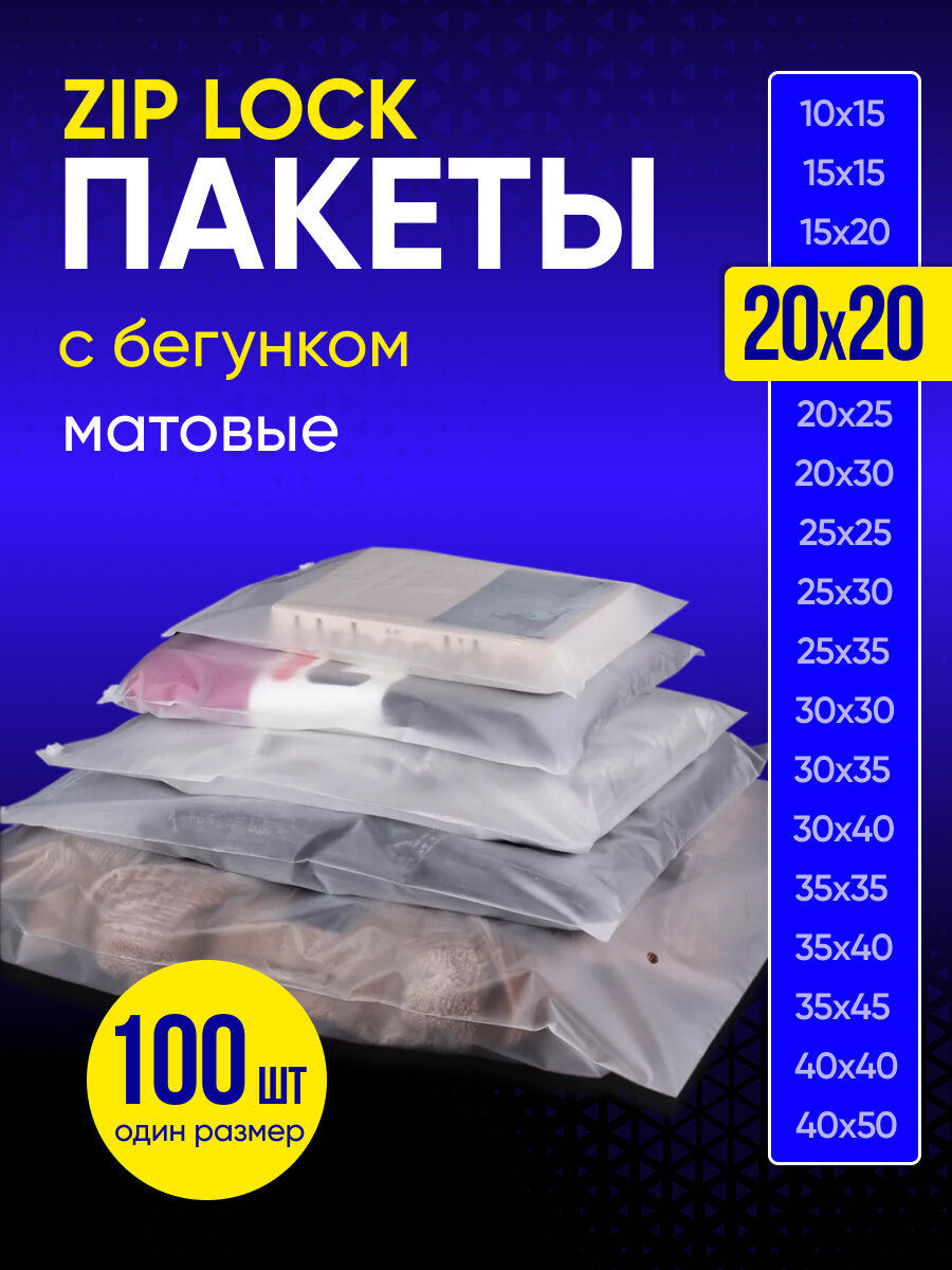 Упаковочный пакет с Зип лок бегунком, 20х20 см, 500 шт, матовые, 120 мкм