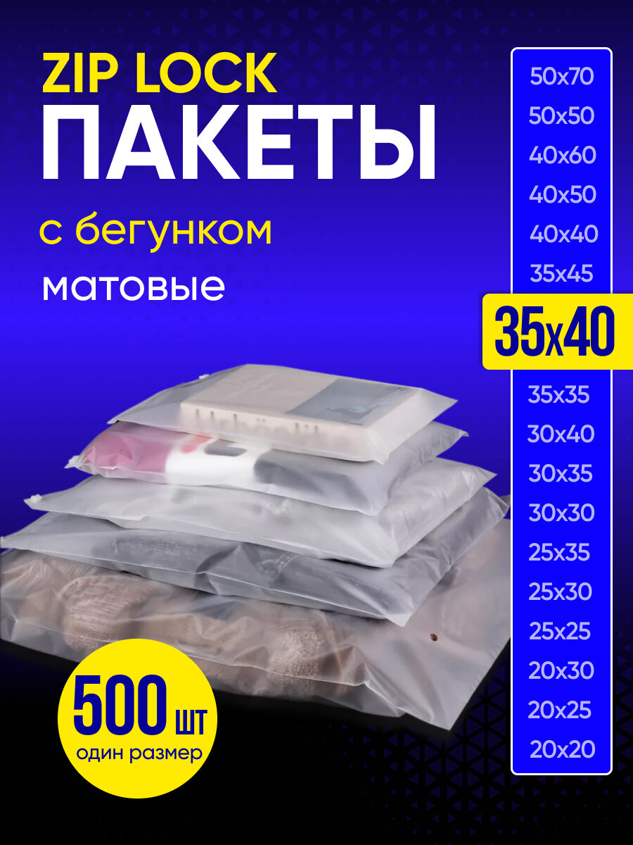 Купить Упаковочный пакет с Зип лок бегунком, 35х40 см, 500 шт, матовые, 120 мкм