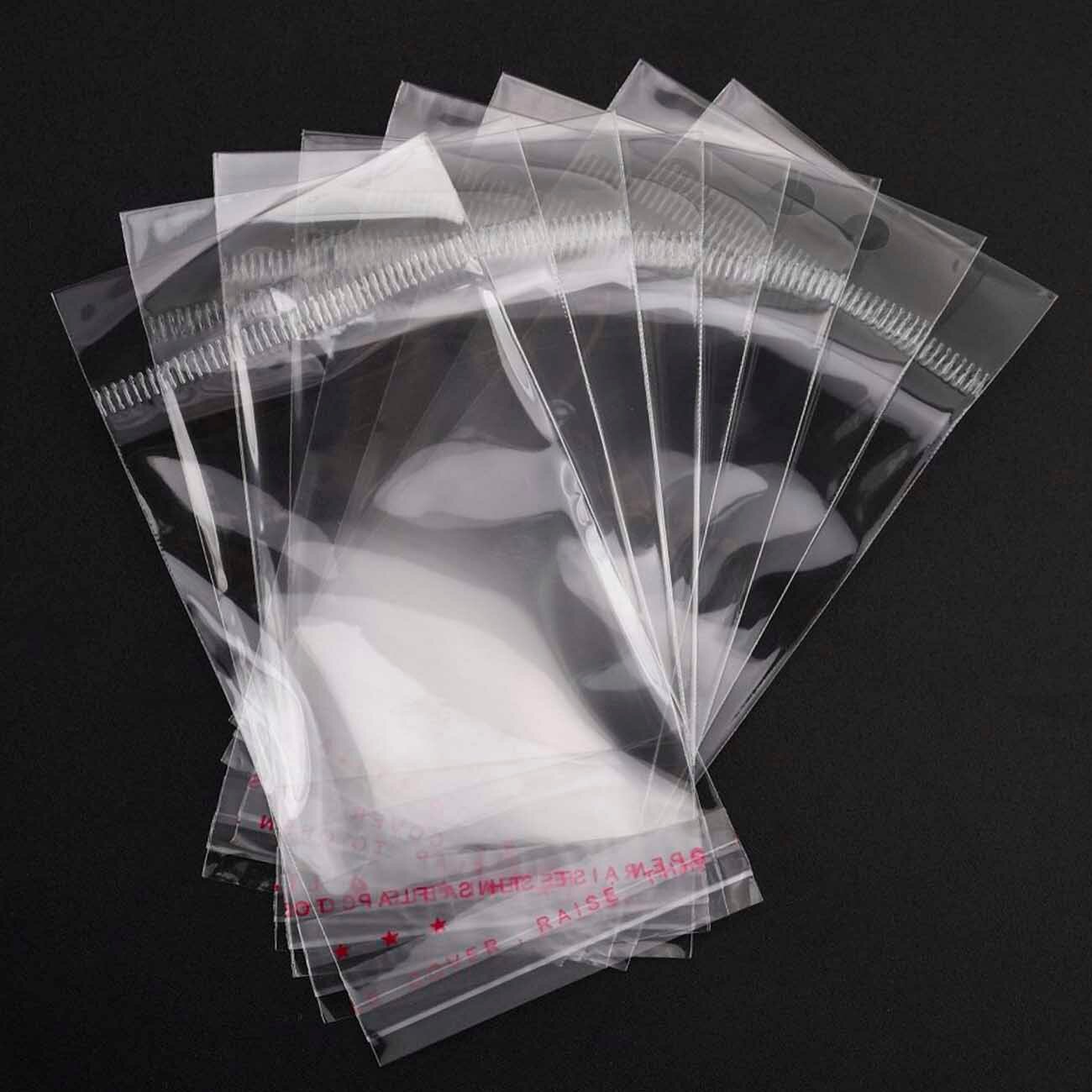 500 пакетов 5х8+5 см с белым подвесом и клеевым клапаном для упаковки из прозрачной пленки бопп