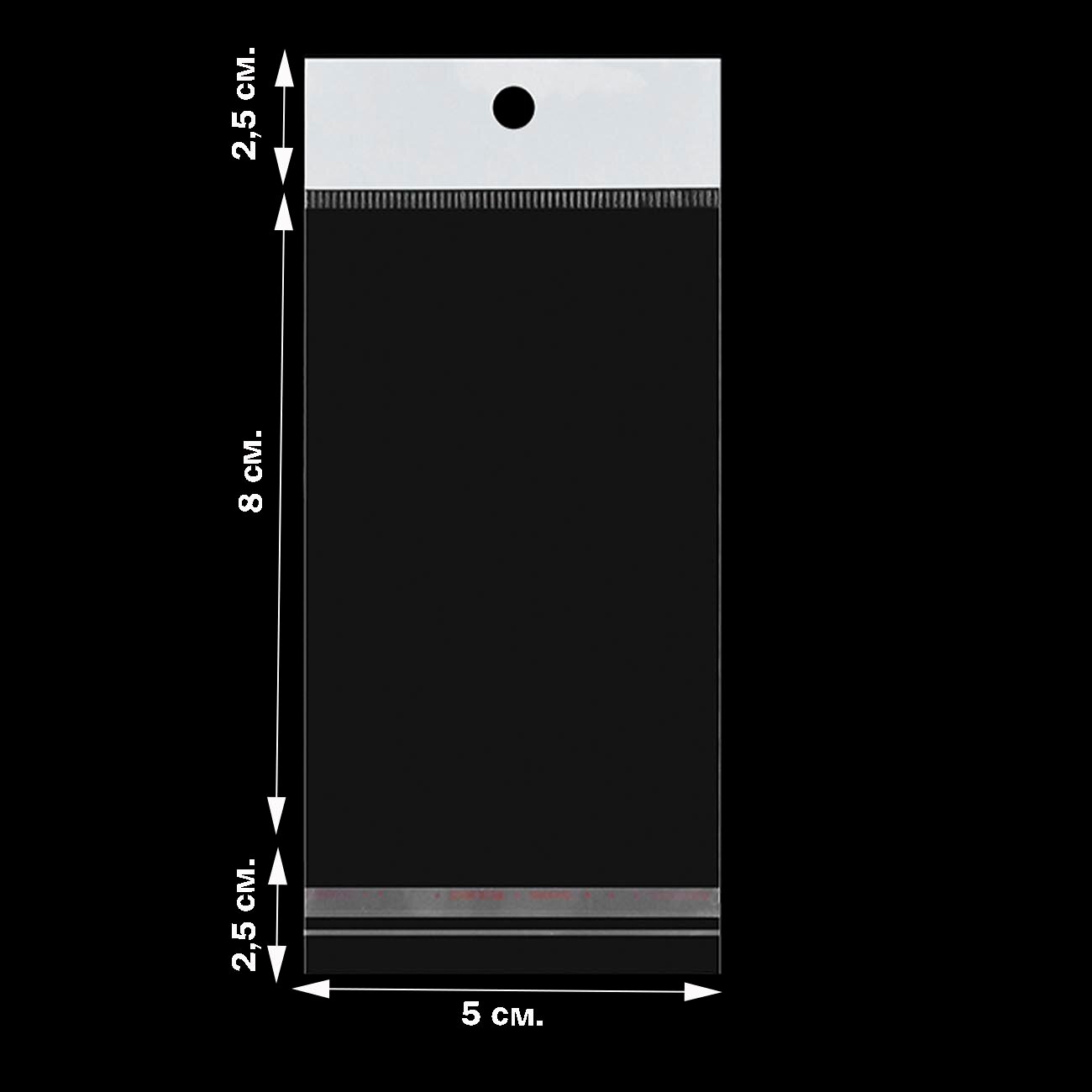 Купить 500 пакетов 5х8+5 см с белым подвесом и клеевым клапаном для упаковки из прозрачной пленки бопп