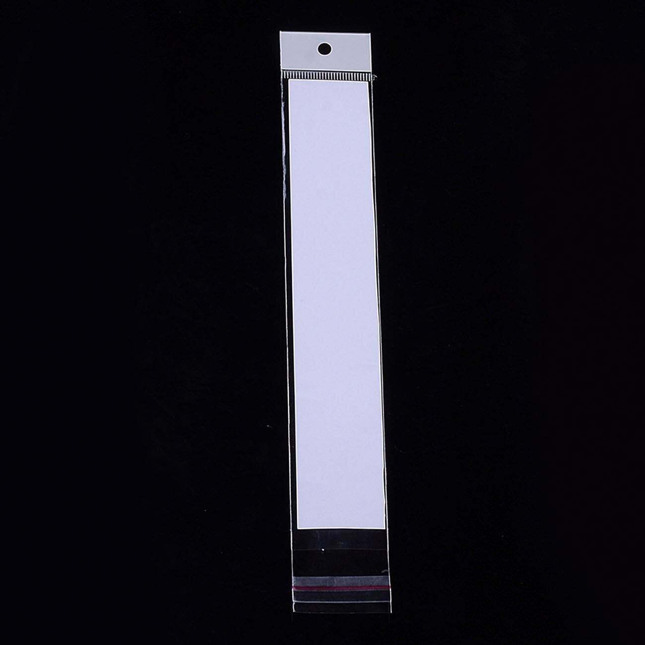 500 пакетов 5х8+5 см с белым подвесом и клеевым клапаном для упаковки из прозрачной пленки бопп