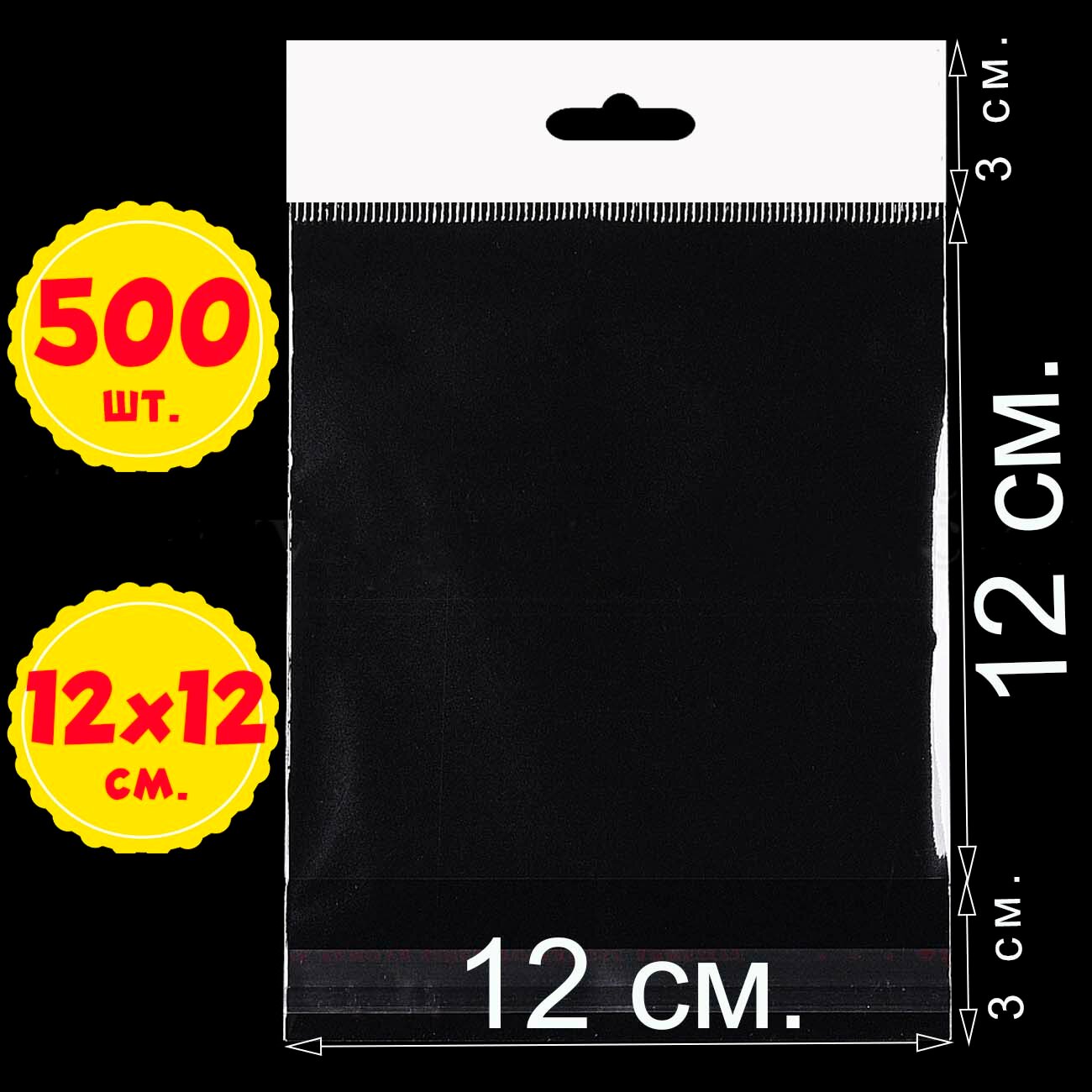 500 пакетов 5х5,5+4 см упаковочных прозрачных с подвесом, белым фоном и клеевым клапаном