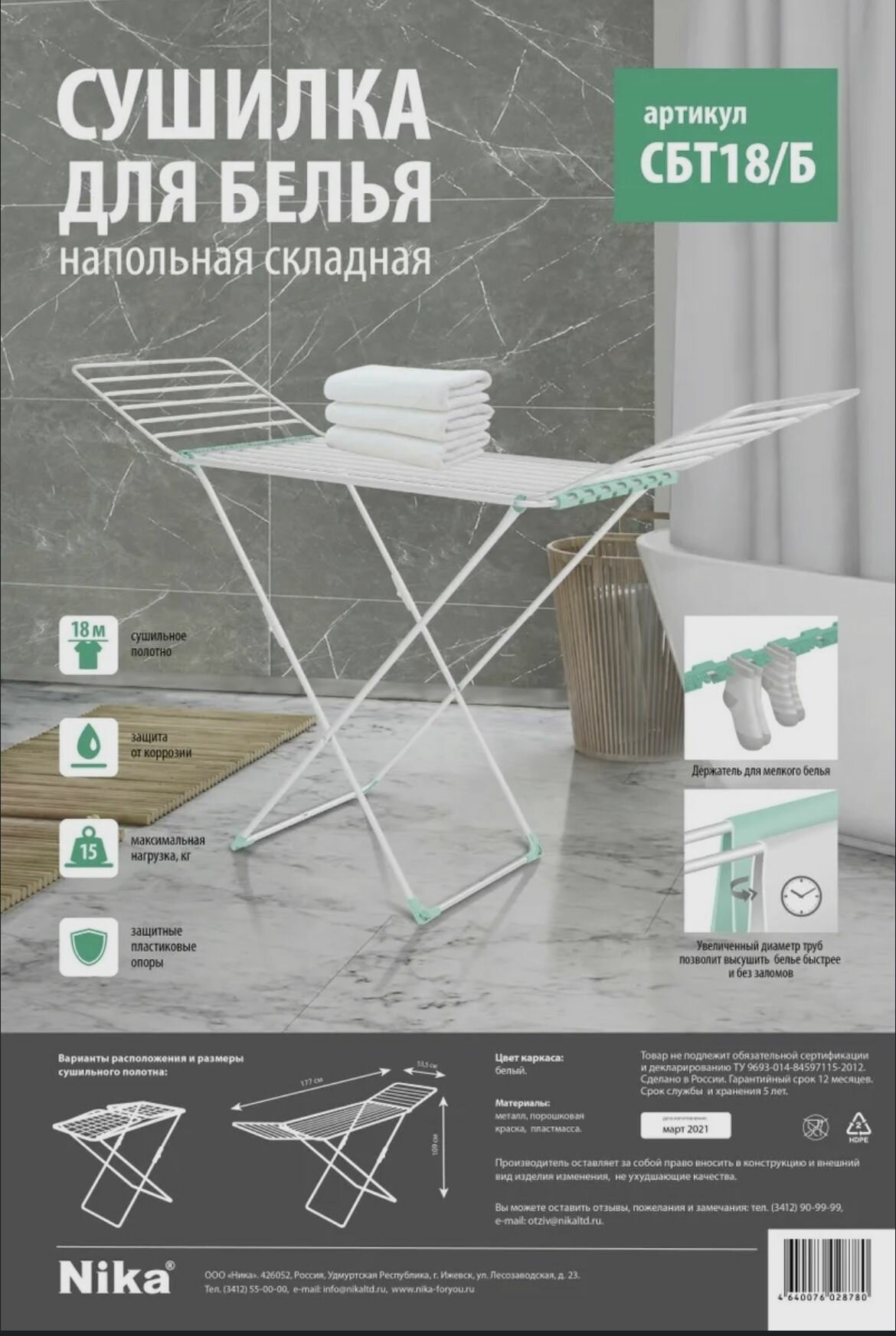 Сушилка для белья NIKA СБТ18/Б 18м (напольная) белый интересное: