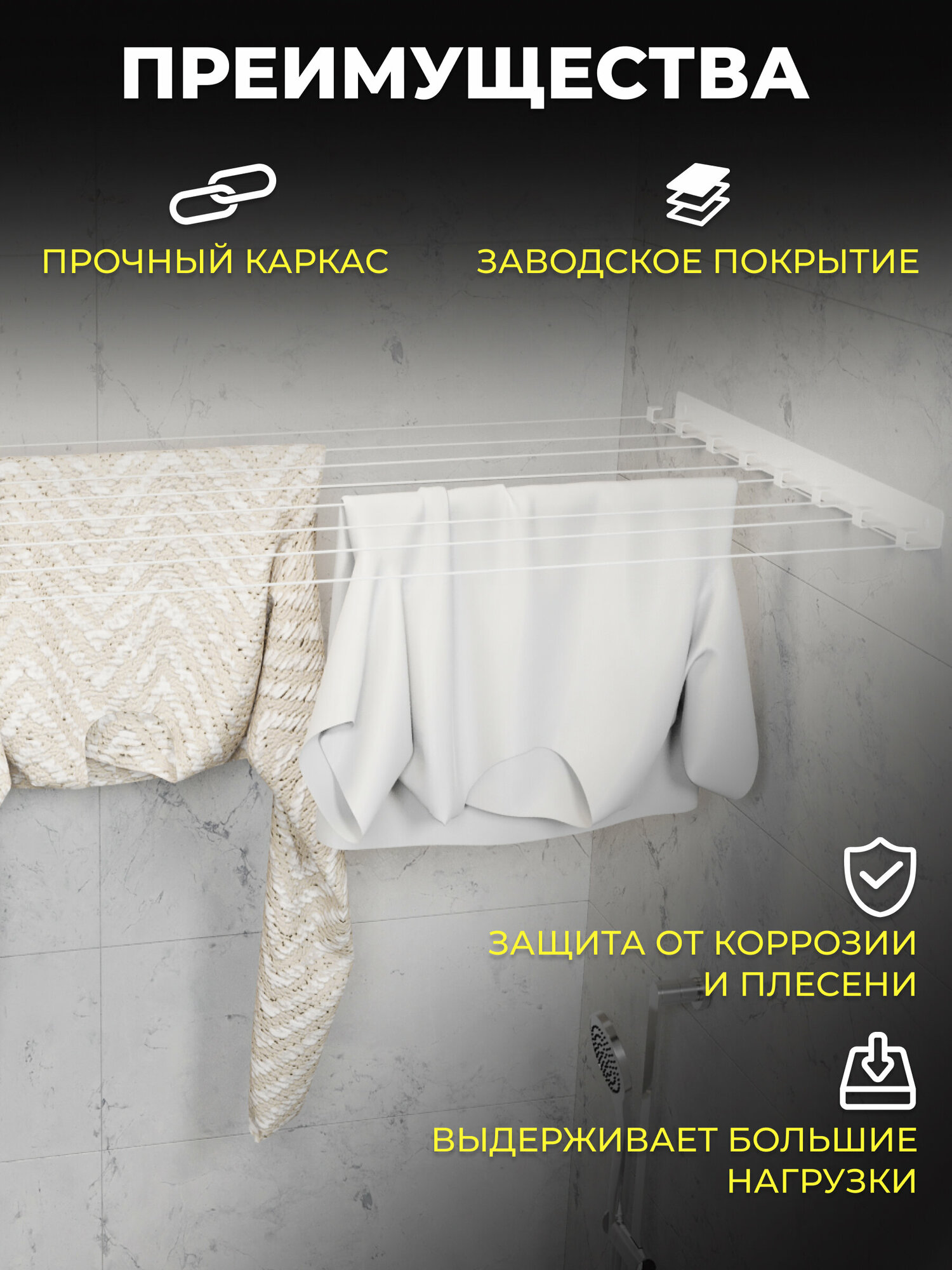 СохранитьСушилка для белья настенная, металлическая, на балкон, террасу, в ванную, в дом, для вещей, одеял, белая, 8 струн, 1 шт. интересное: