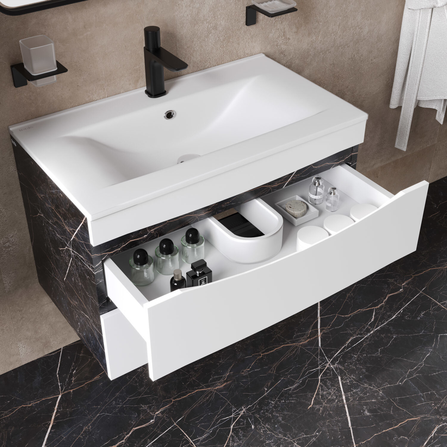Тумба с умывальником, подвесная, 80 см, белая/черный мрамор, Cloud, IDDIS, CLO80B0i95K