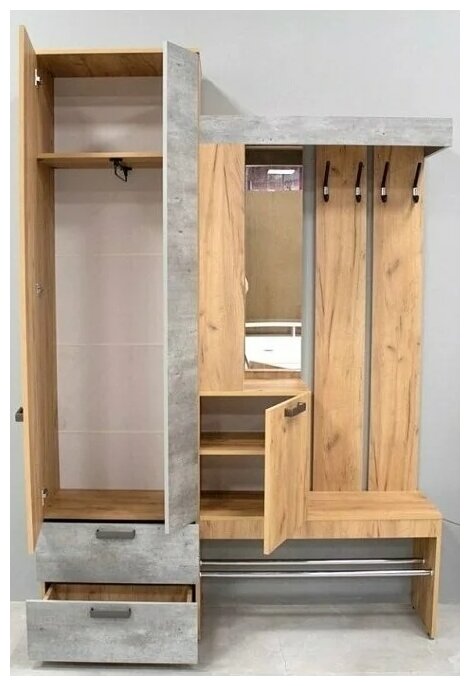 Ниже Вы можете прочитать отзывы на Комплект для прихожей BTS Трамп, цвет: крафт/метрополитан грей/фурнитура: черный, ознакомится с подробными характеристиками, посмотреть интересные обзоры и фотографии на Комплект для прихожей BTS Трамп, цвет: крафт/метрополитан грей/фурнитура: черный.
