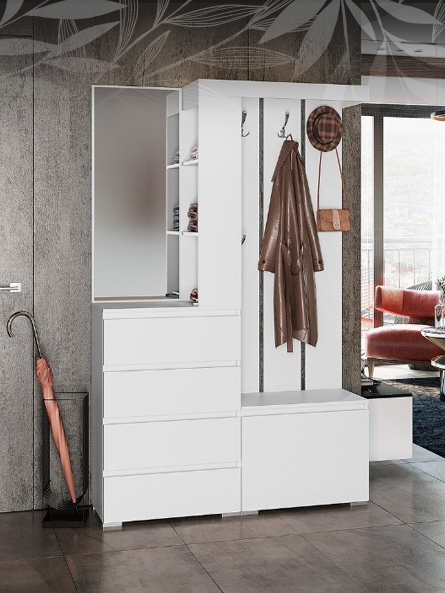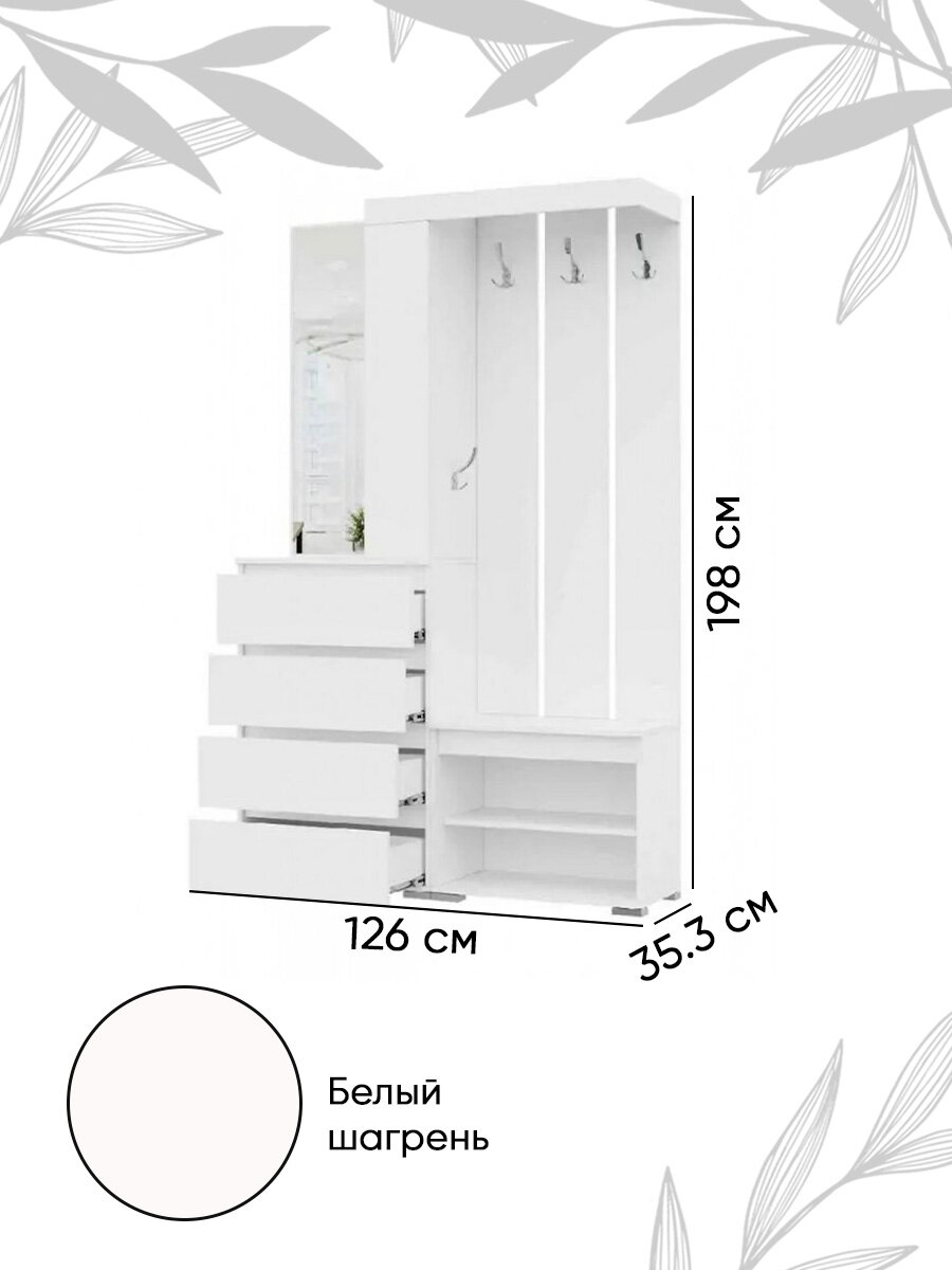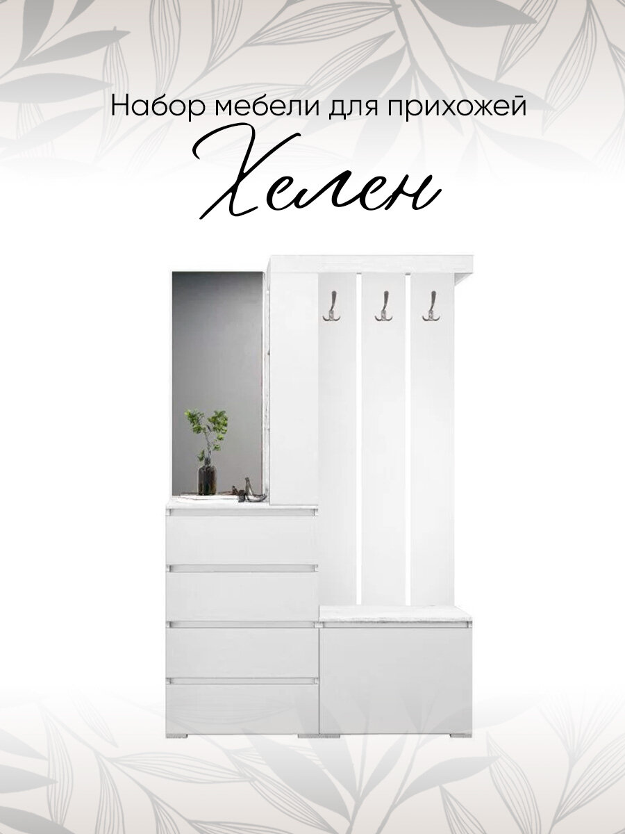 Набор мебели для прихожей Хелен с комодом, вешалкой, зеркалом и обувницей, белый шагрень интересное: