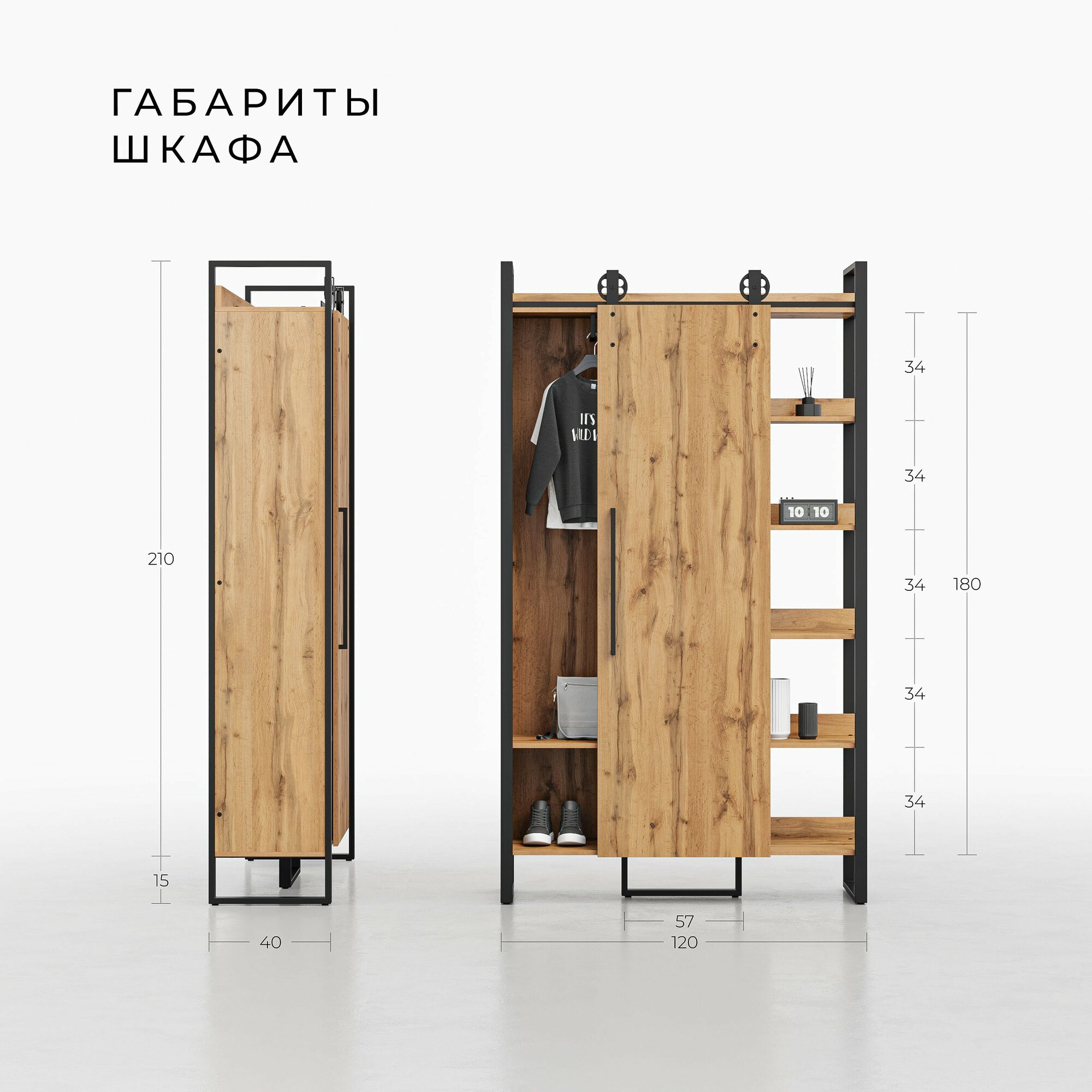 Прихожая лофт Монтана Шкаф купе 120х40х210 TOPLOFT интересное: