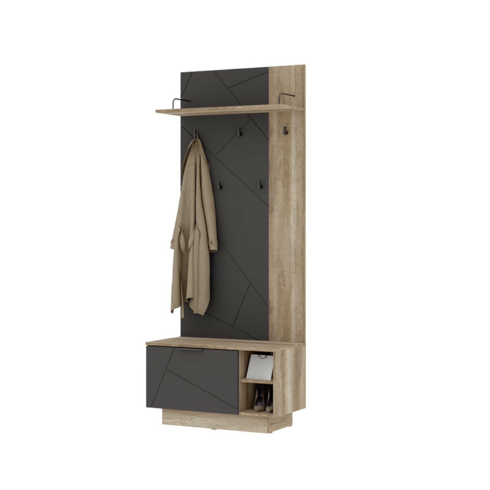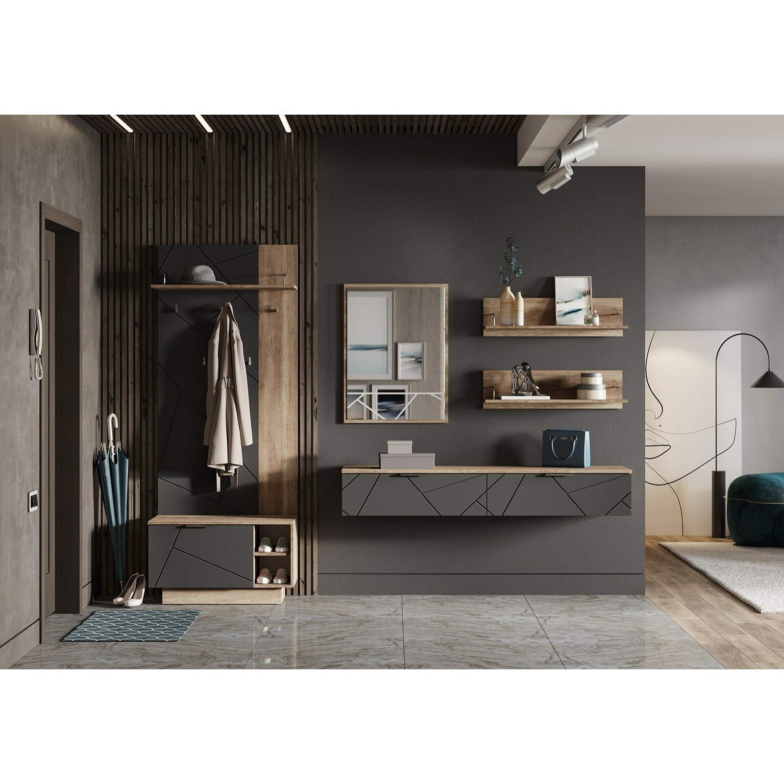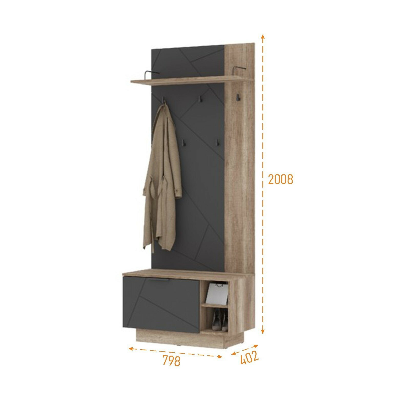 Прихожая Денвер, 800х360х1925, Графит/Дуб гранж