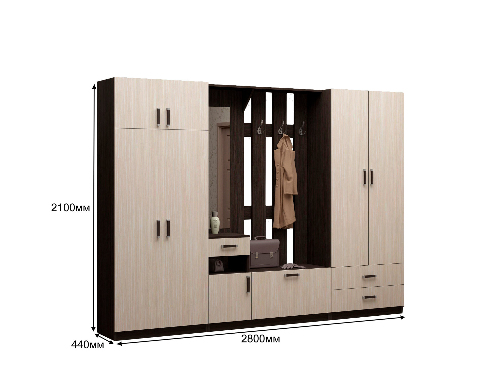 Купить Модульная прихожая Машенька от Дисави со шкафом, ящиками, зеркалом и обувницей (состоит из 3 модулей) 280X210X44см Венге/Белфорд