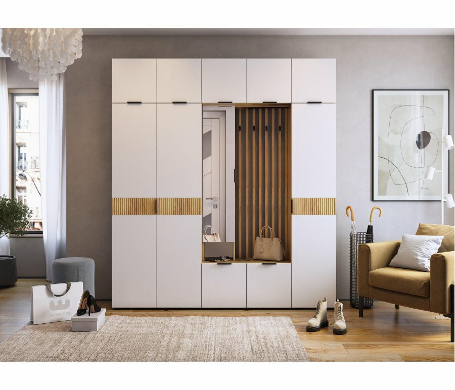 | Особенности | модульная конструкция, с местом для сидения, шкаф с зеркалом |