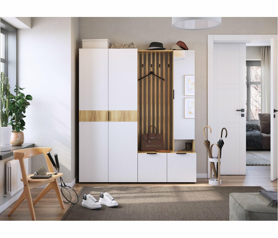 Прихожая Woodville Бери дуб крафт золотой / белое дерево интересное: