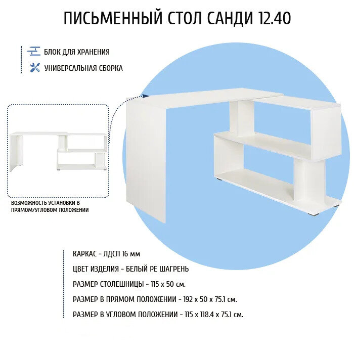 Стол письменный Санди 12.40 Белый РЕ шагрень интересное: