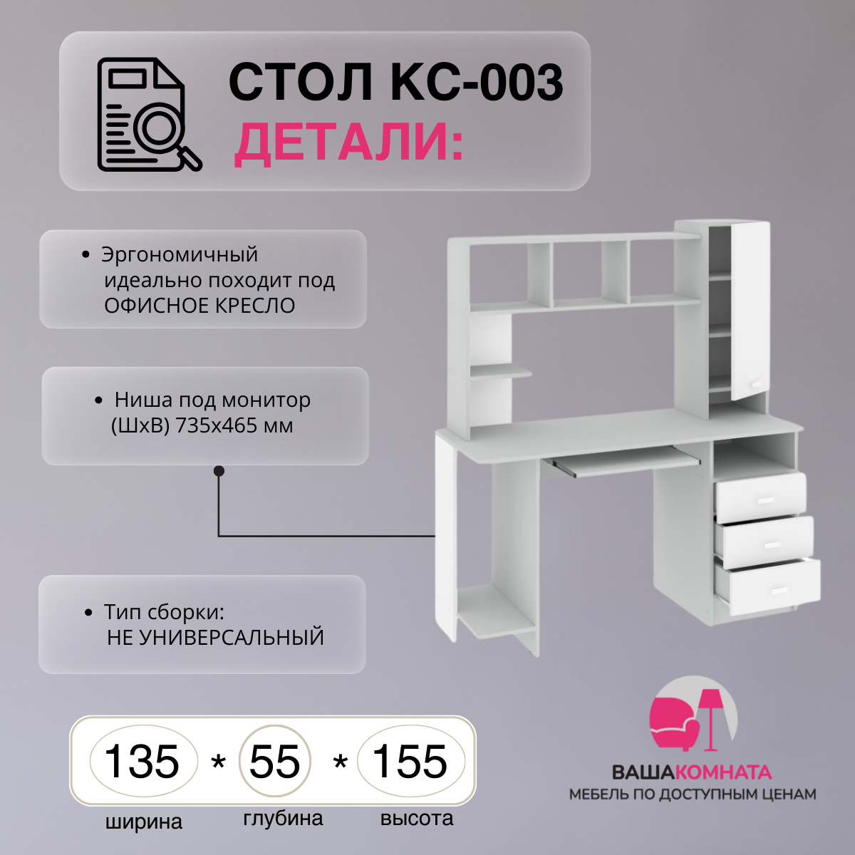 Ниже Вы можете прочитать отзывы на Стол компьютерный КС-003 - серый/белый, ознакомится с подробными характеристиками, посмотреть интересные обзоры и фотографии на Стол компьютерный КС-003 - серый/белый.