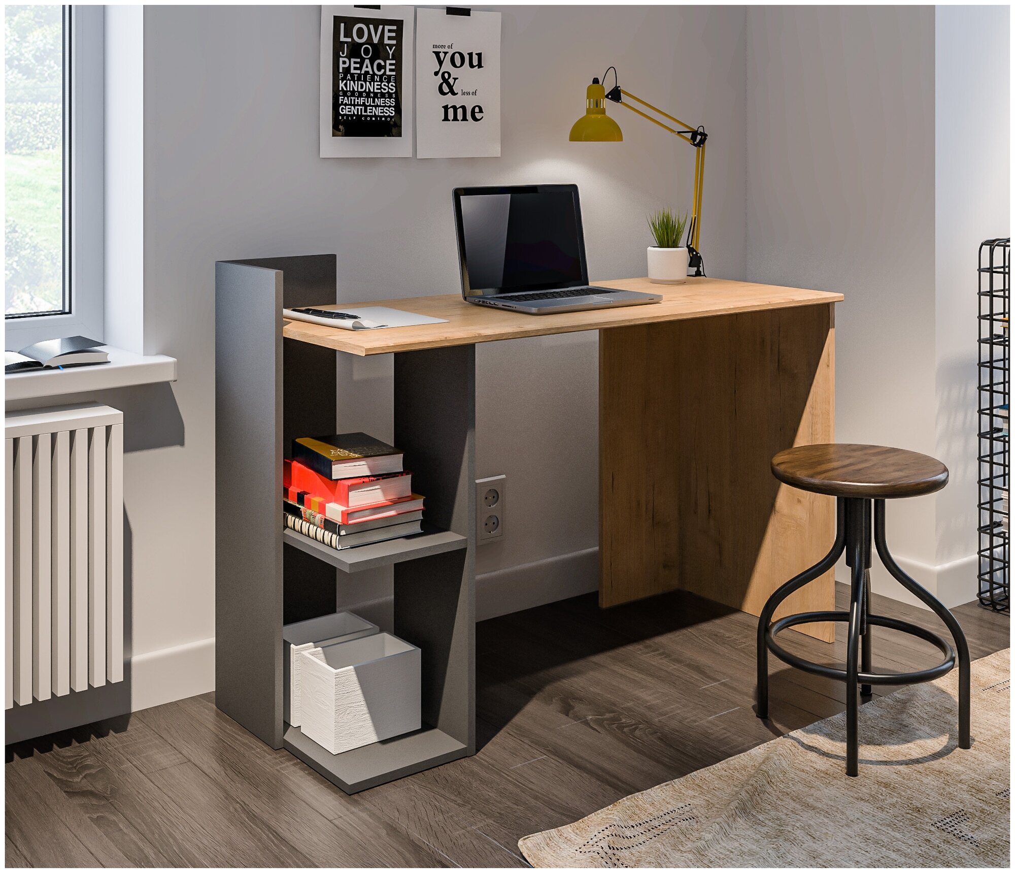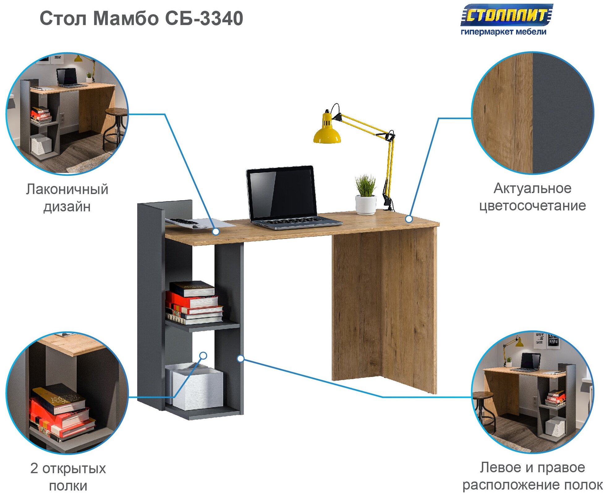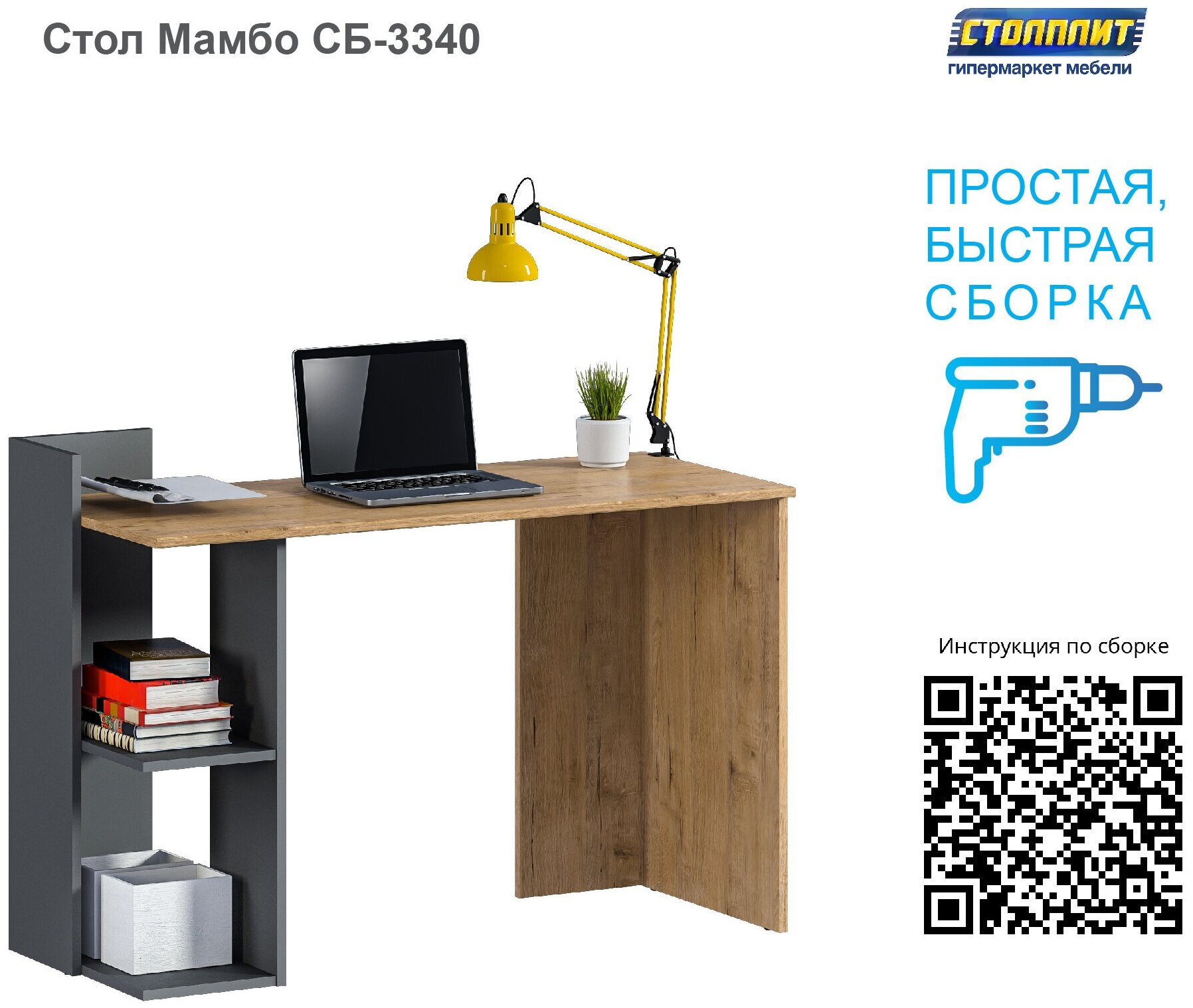 Стол письменный компьютерный рабочий столплит Мамбо СБ-3340 с полками, Дуб Бунратти/Диамант серый 120х85х51 см интересное:
