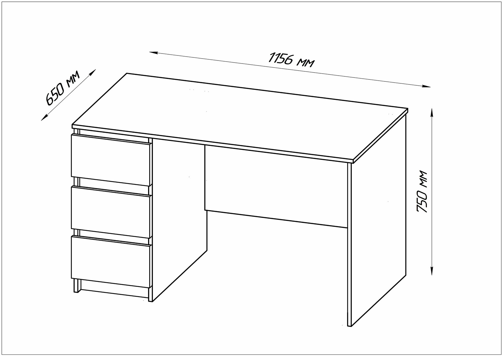 Стол письменный Шведский Стандарт Кастор 3 ящика 116х65 см белый