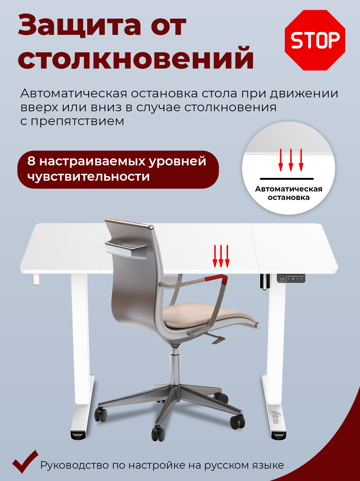 Стол компьютерный с регулируемой высотой RITMIX TBL-120a white, с подъемным механизмом, для работы и сидя, и стоя