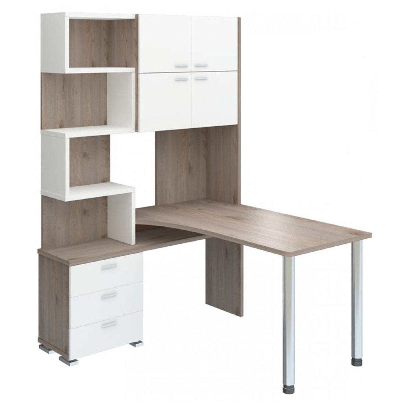 Стол компьютерный Мэрдэс СР-500М/140 НБЕН-ПРАВ Нельсон/Белый/Нельсон, с надстройкой, угловой, 130х140х199 см