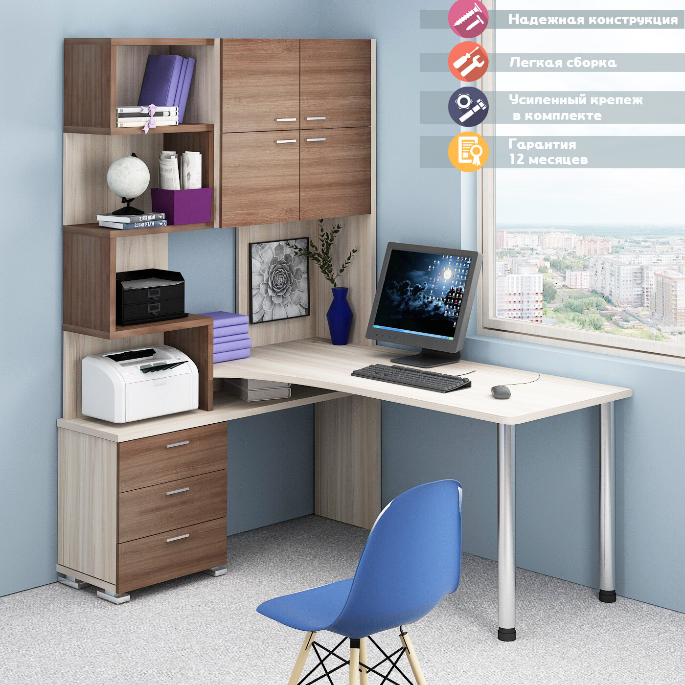 Стол компьютерный Мэрдэс СР-500М/140 К-ПРАВ Карамель, с надстройкой, угловой, 130х140х199 см