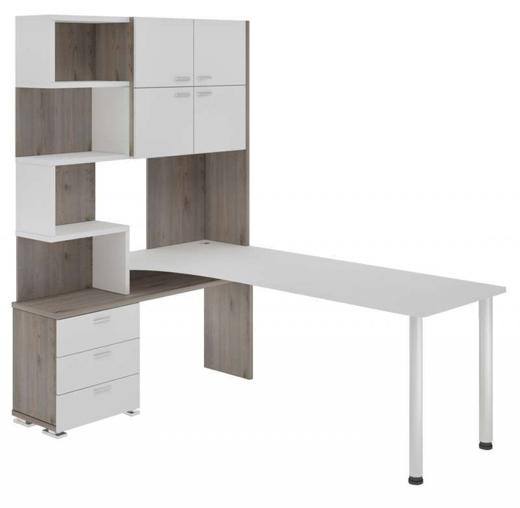 Стол компьютерный Мэрдэс СР-500М/160 БЕНН-ПРАВ Белый/Нельсон/Нельсон, с надстройкой, угловой, 130х160х199 см