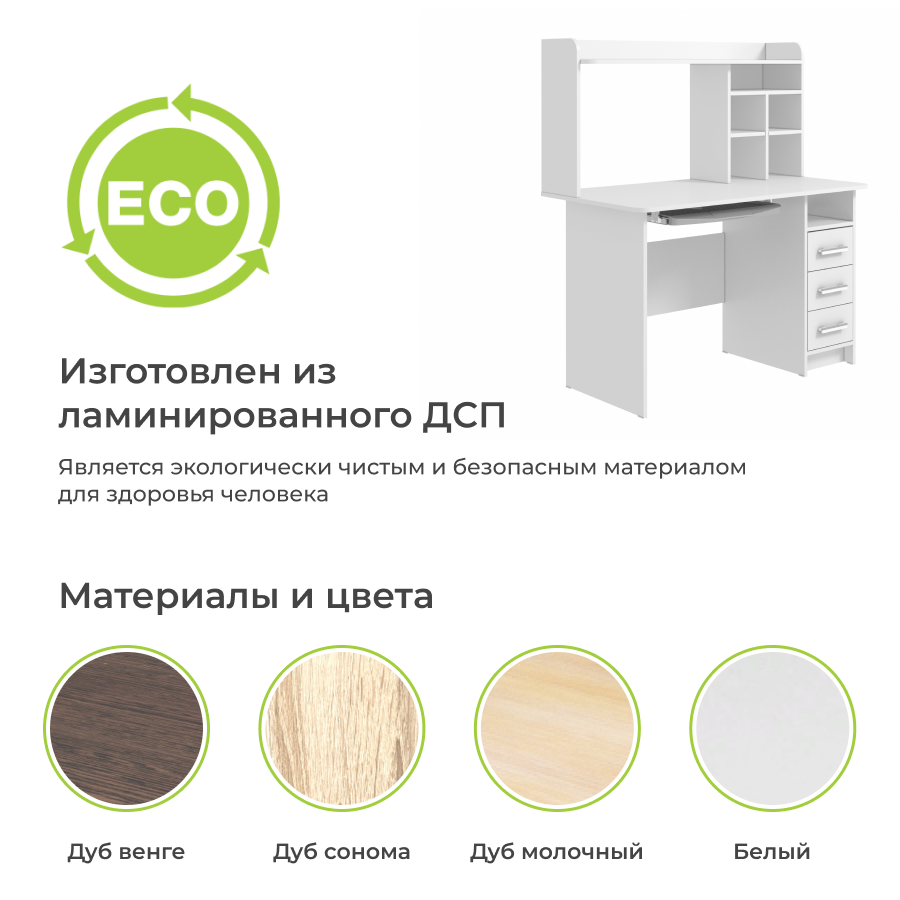 Компьютерный стол КС 1200 Белый BONMEBEL, 120х60х134 см интересное: