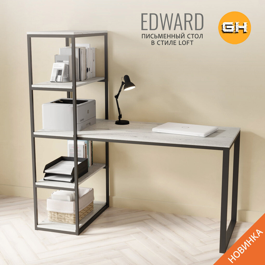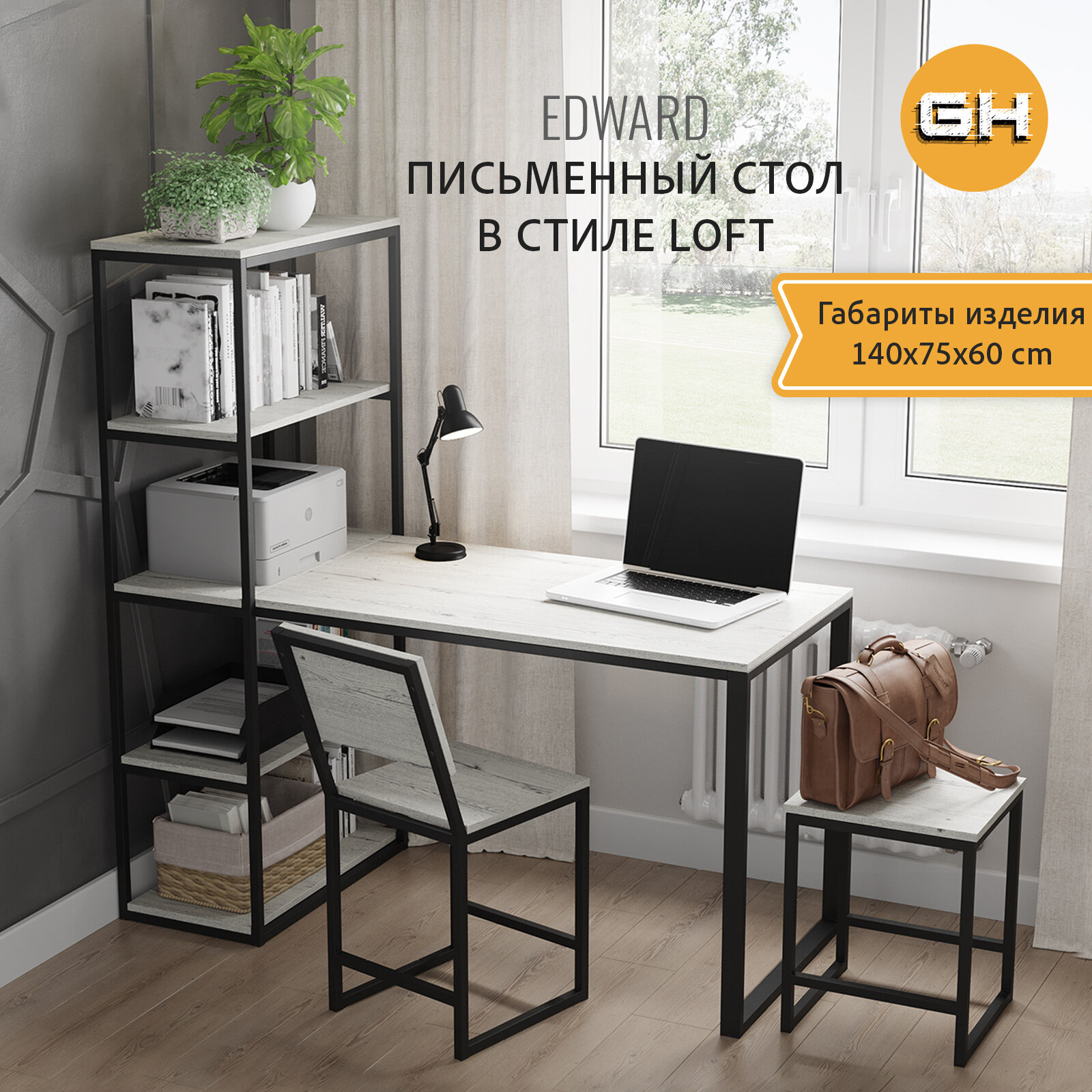 Стол письменный EDWARD loft, светло-серый, офисный, компьютерный, 140x60x75 см, гростат интересное:
