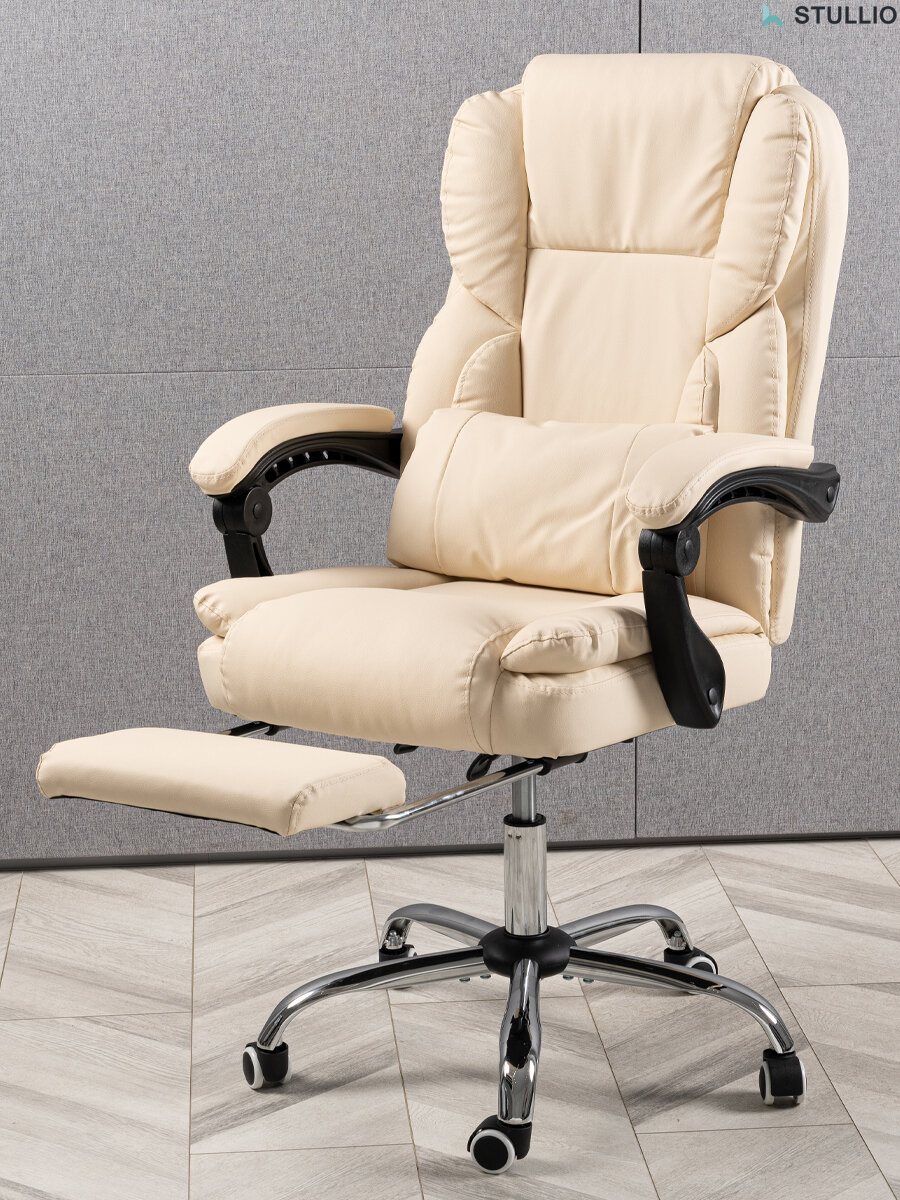 Мягкое компьютерное кресло с подушкой под поясницу, цвет молочный интересное: