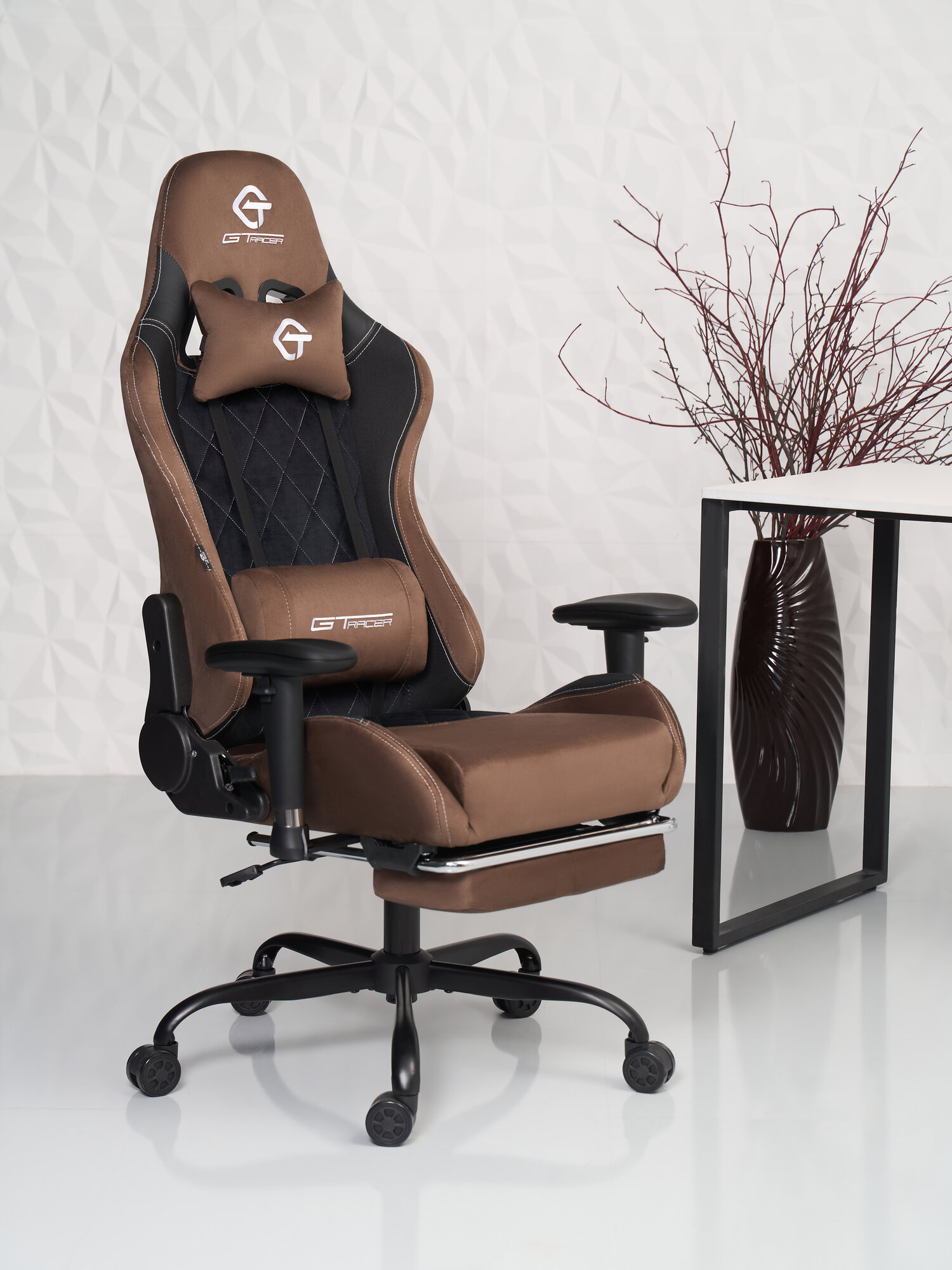 Игровое компьютерное кресло GT Racer 306F цвет коричневый с чёрными вставками. Подножка в комплекте.