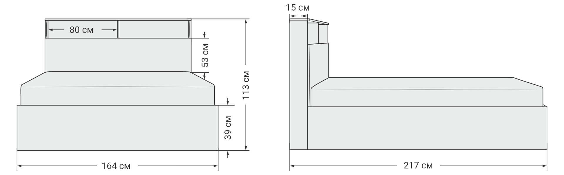 Двуспальная кровать Лаки, без подъемного механизма, с полками в изголовье, цвет сонома, 160х200 см интересное: