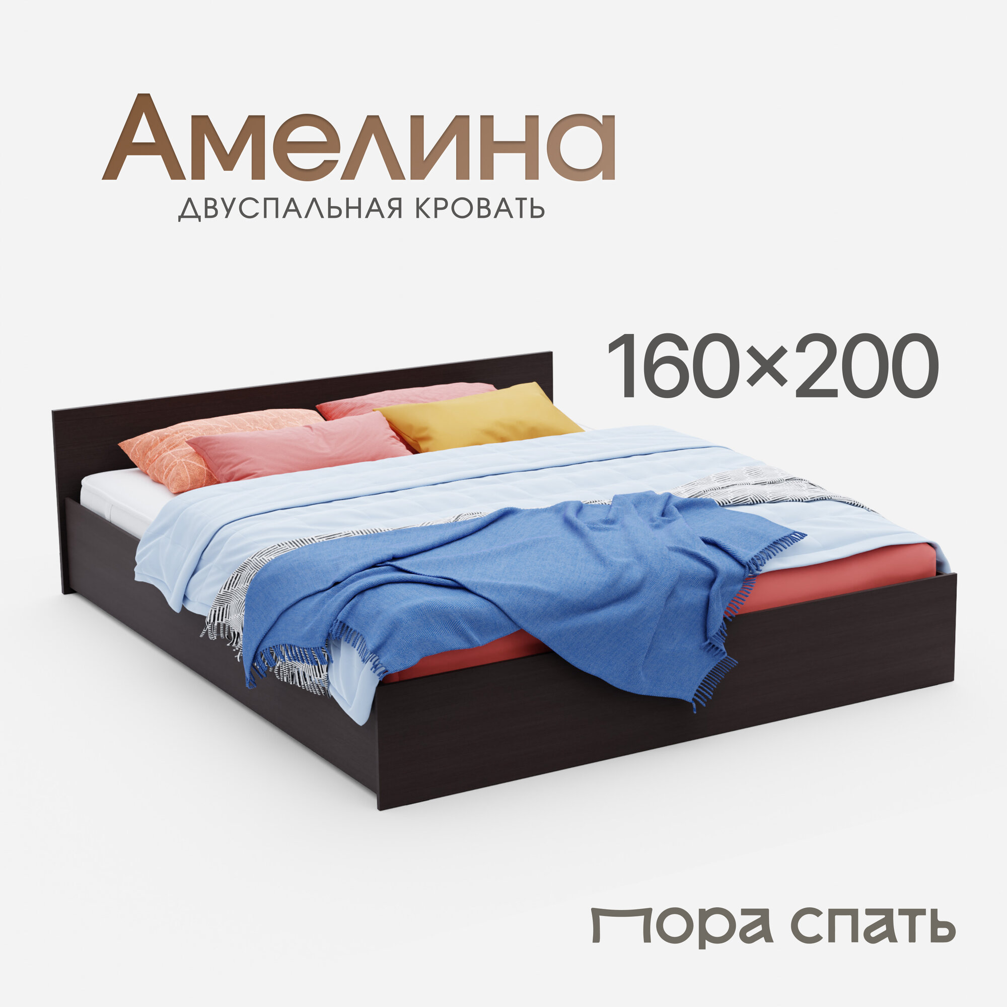 Купить Кровать двуспальная Пора Спать Амелина с основанием ДСП, Венге спальное место: 200х160 см, габариты: 204х169 см