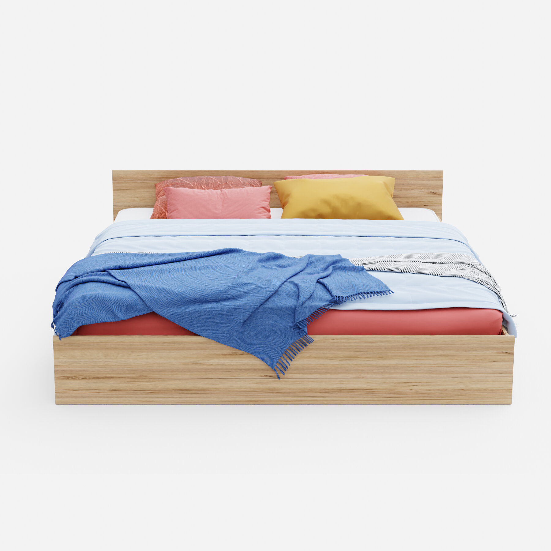 Купить Кровать двуспальная Пора Спать Амелина с основанием ДСП, Дуб Крафт, спальное место: 200х180 см, габариты: 204х189 см