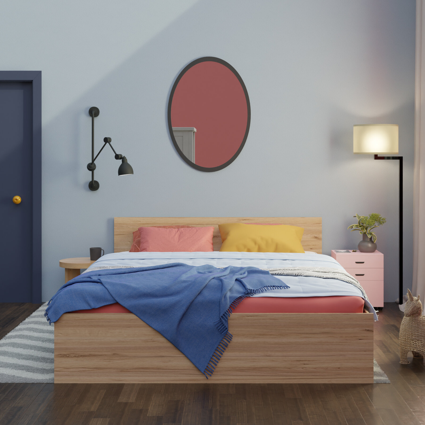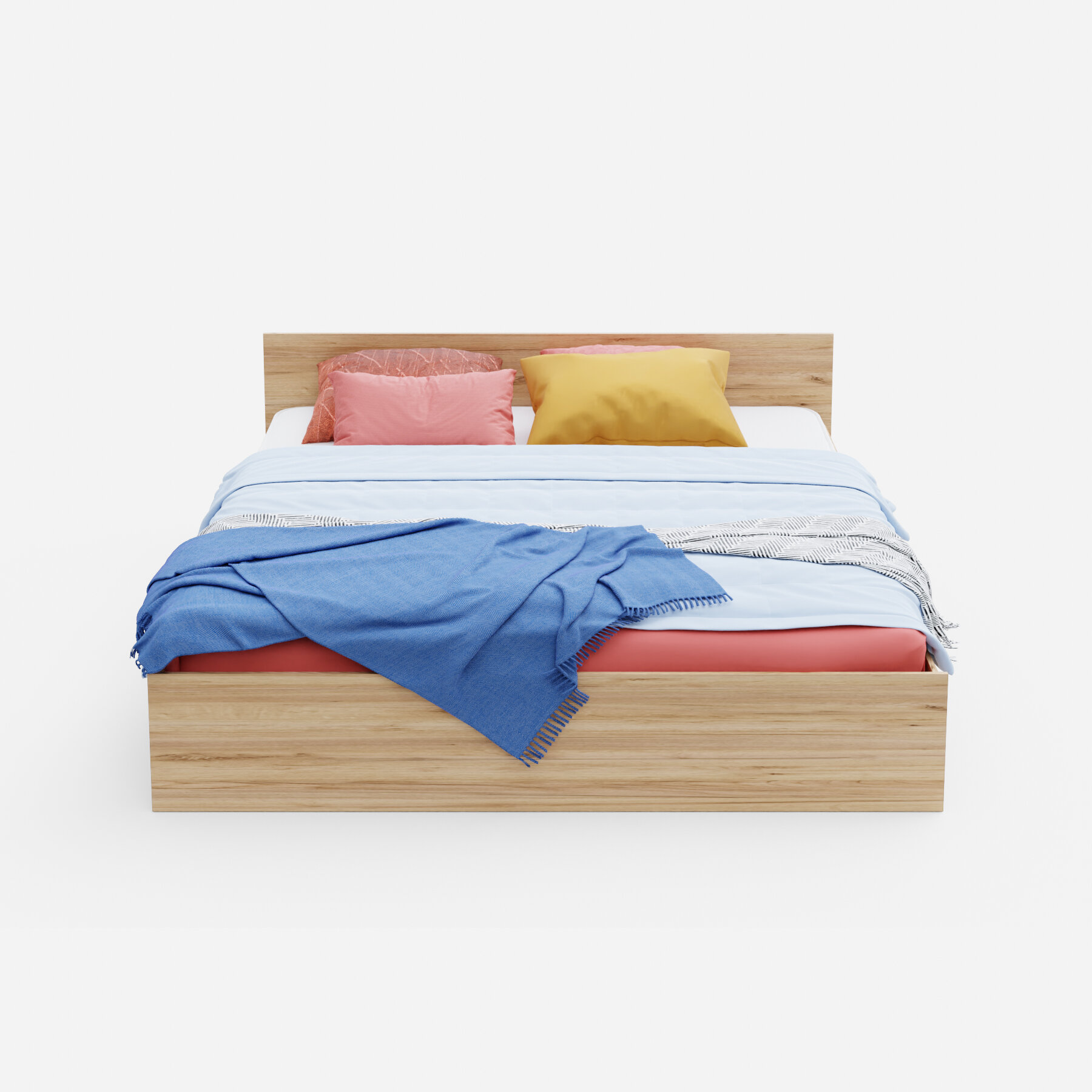 Кровать двуспальная Пора Спать Амелина с основанием ДСП, Дуб Крафт, спальное место: 200х180 см, габариты: 204х189 см