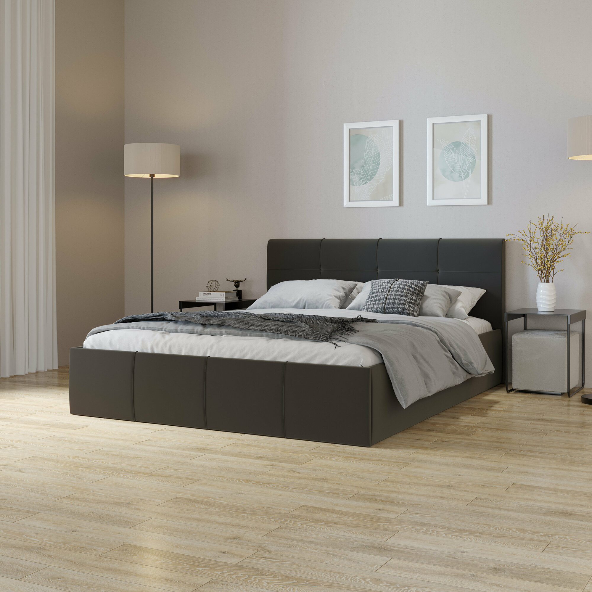 Кровать двуспальная 160х200 см, с ПМ Лора (Велюр Confetti Smoke)