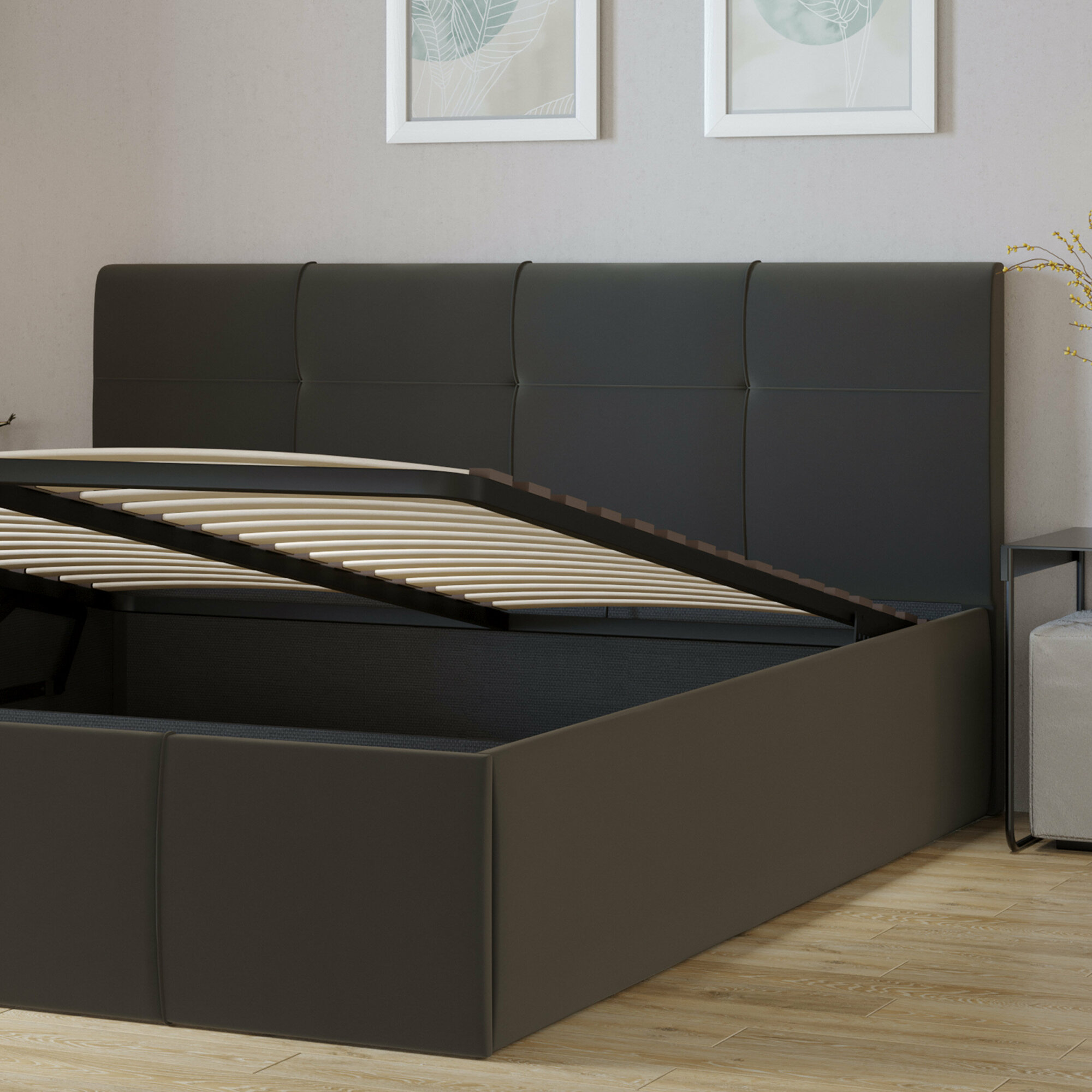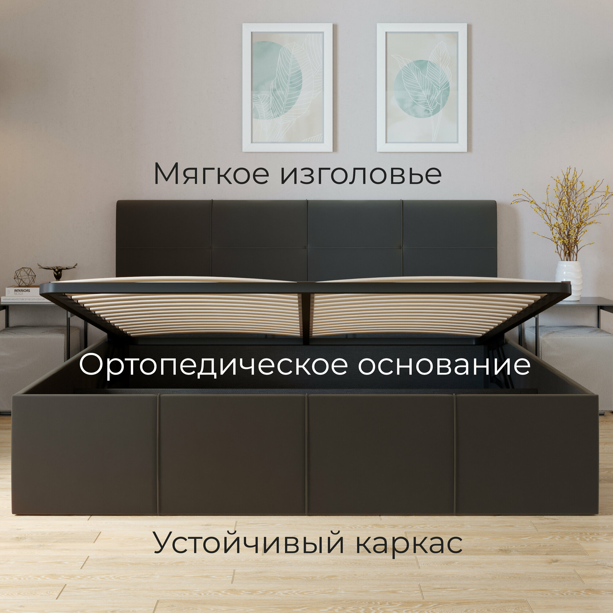 | Особенности | мягкое изголовье, с изножьем, с подъемным механизмом |