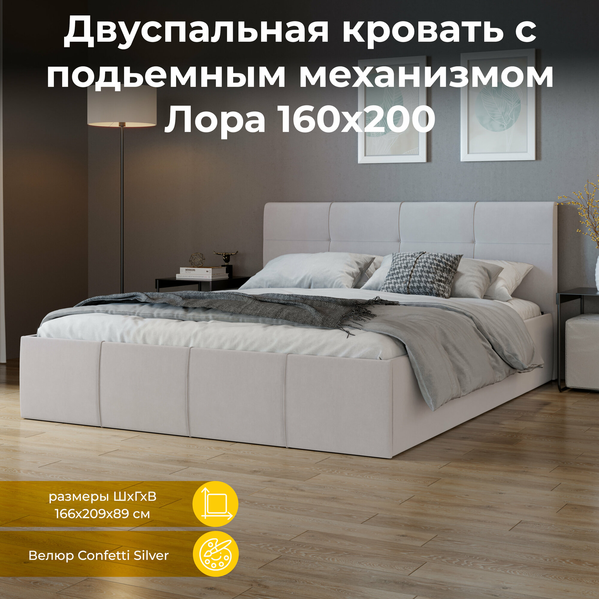 Кровать двуспальная 160х200 см, с ПМ Лора (Велюр Confetti Silver)
