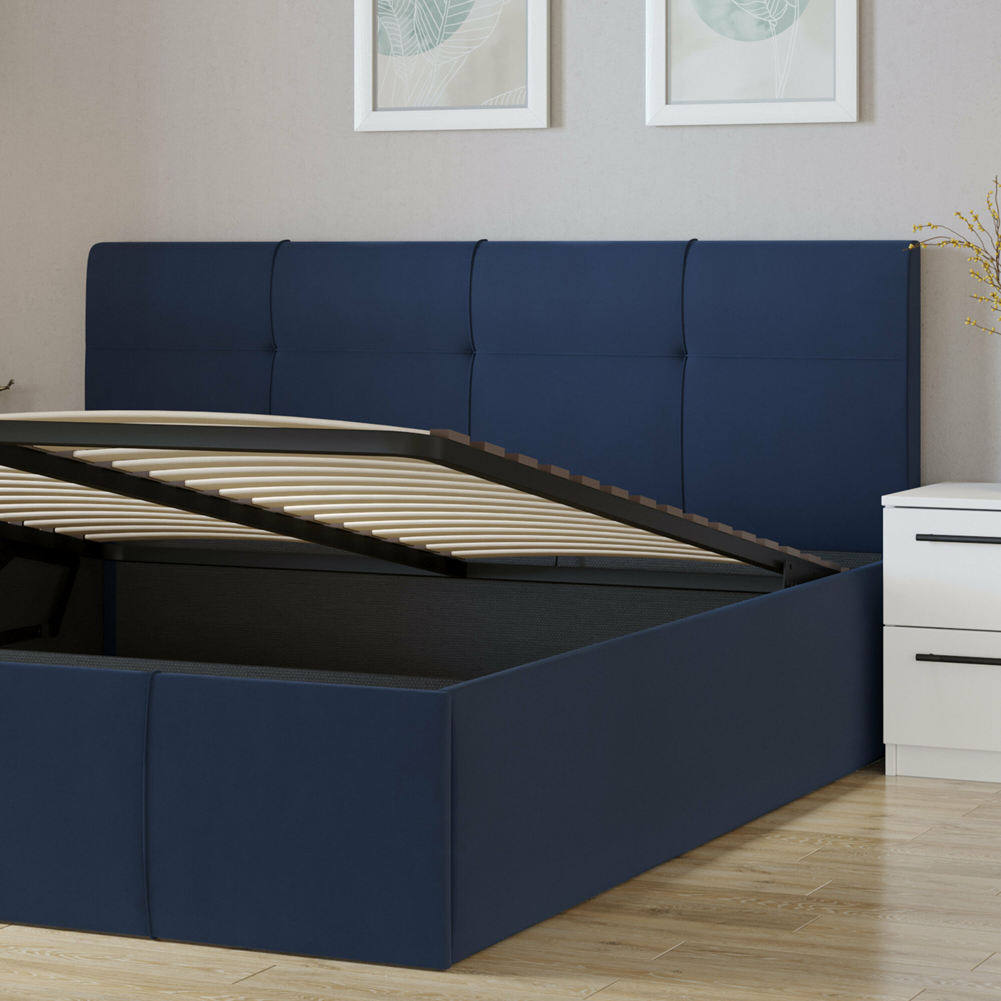 Купить Кровать с подъемным механизмом, с мягкой обивкой и заглушиной синяя 160х200 Лора Велюр Confetti Blue